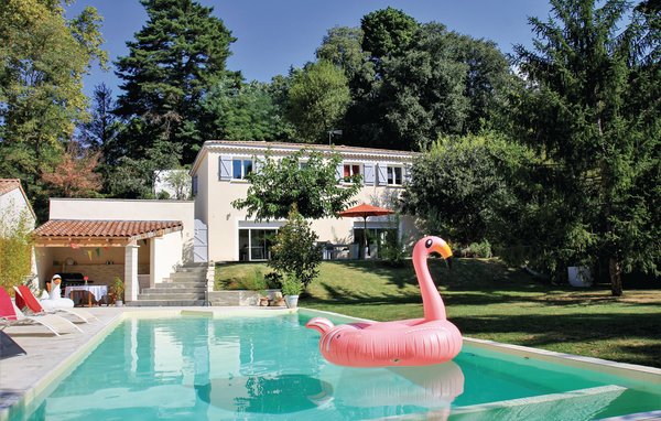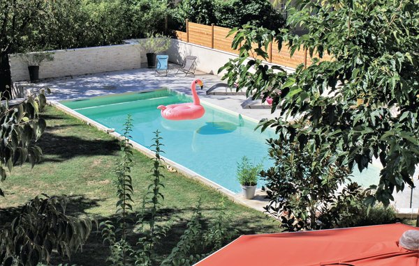 This pool house in Provençal and contemporary style at the same time is located in Montélimar, where it promises its guests an unforgettable vacation in the sunny Drôme. The rural and quietly situated vacation home stands on a 1,700 m² garden plot with a playground, table tennis table and a spacious, comfortably furnished terrace. Centuries-old trees cast a shade in which it is pleasant to relax in the hot summer months. Inside, a bright and cozy living ambience awaits you, immediately giving you that long-awaited vacation feeling. Reversible heat pump (cooling in summer).