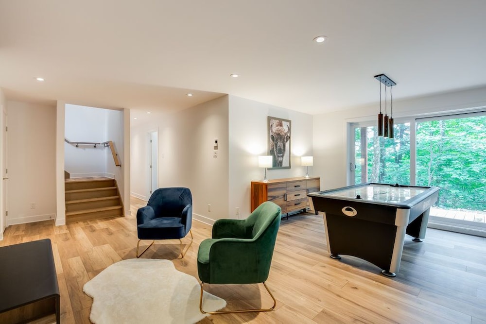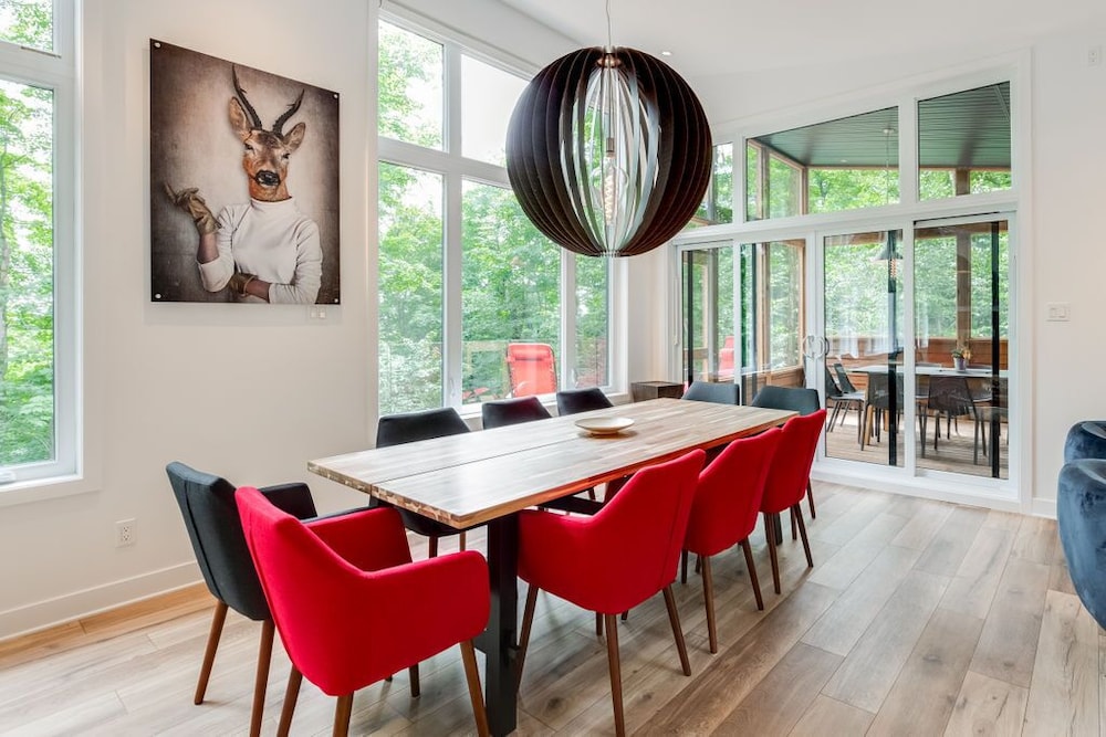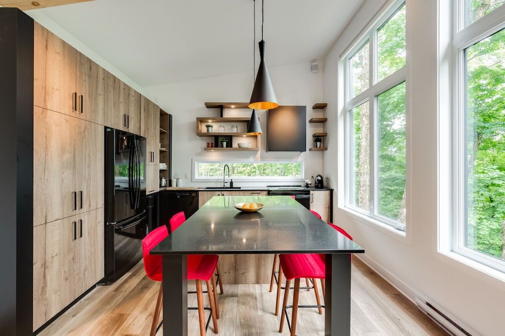 When you stay at this chalet in Morin Heights, you'll be near the beach and within a 5-minute drive of Sommet Morin Heights. This spa chalet is 3.8 mi (6.1 km) from Amerispa Station Baltique and 5.3 mi (8.6 km) from Clydesdale National Forest Park. A kitchen is outfitted with a full-sized refrigerator/freezer, an oven, and a microwave. Complimentary wireless internet access keeps you connected, and a flat-screen television is provided for your entertainment. The bathroom has a separate bathtub and shower.Conveniences include a coffee/tea maker and a washer/dryer, and housekeeping is provided on request. Distances are displayed to the nearest 0.1 mile and kilometer.