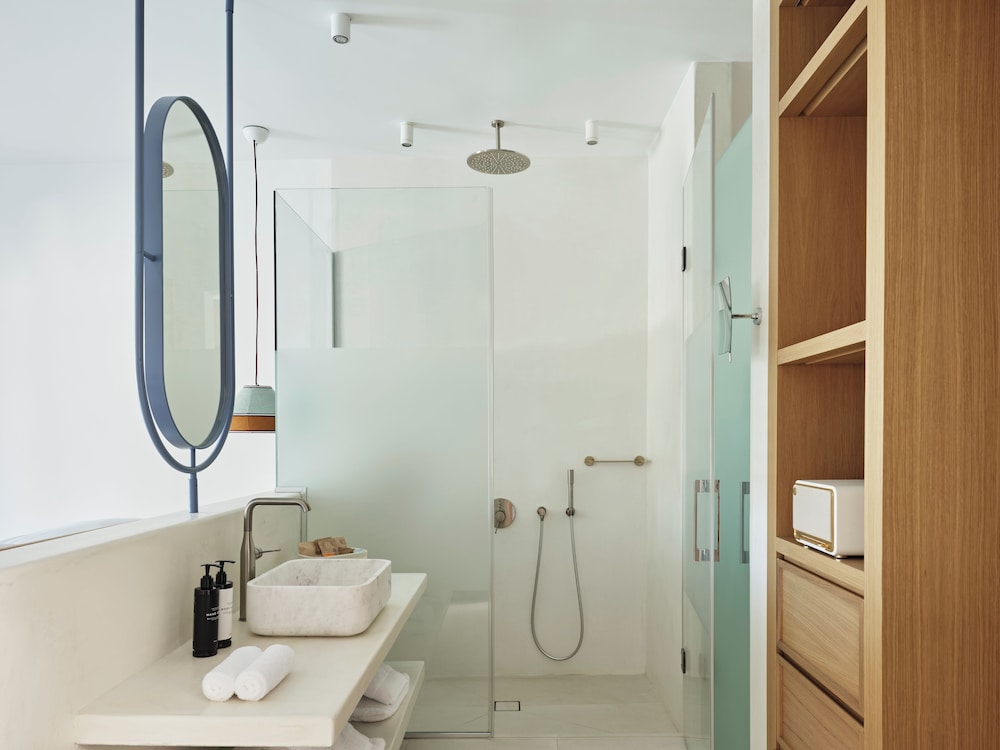 Located in Mykonos, Myconian Sunrise Relais & Chateaux Hotel is within a 15-minute drive of Windmills of Mykonos and Mykonos Old Port. This beach hotel is 0.4 mi (0.6 km) from Elia Beach and 6.8 mi (11 km) from Mykonos New Port. Stay in one of 40 guestrooms featuring LED televisions. Your room comes with a pillowtop bed. Rooms have private balconies. Complimentary wireless internet access keeps you connected, and satellite programming is available for your entertainment. Bathrooms feature showers, complimentary toiletries, and hair dryers. Distances are displayed to the nearest 0.1 mile and kilometer.