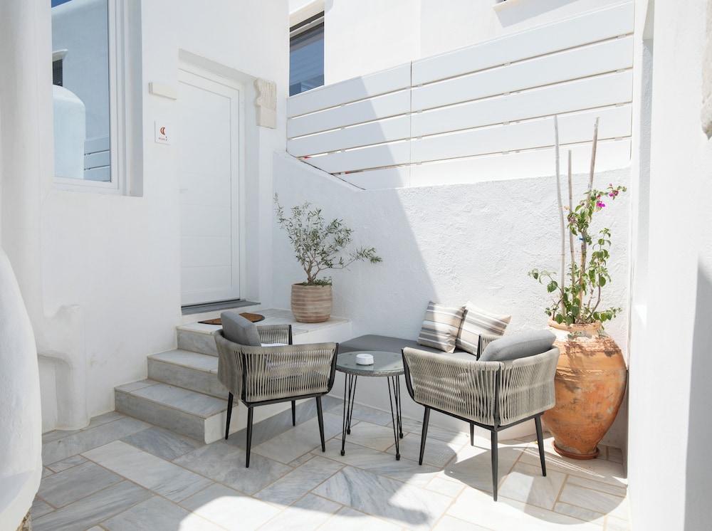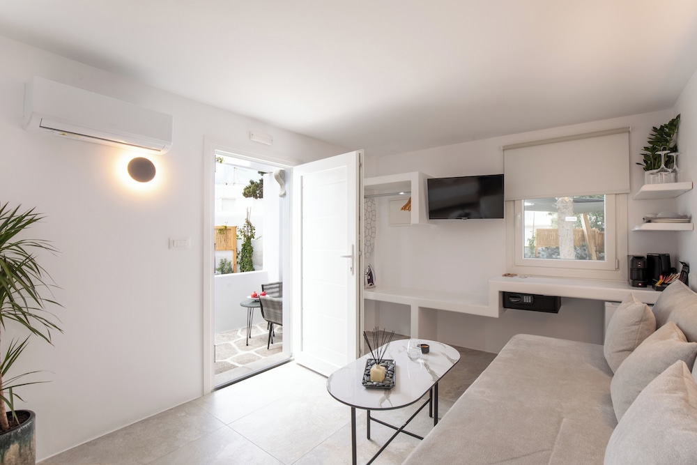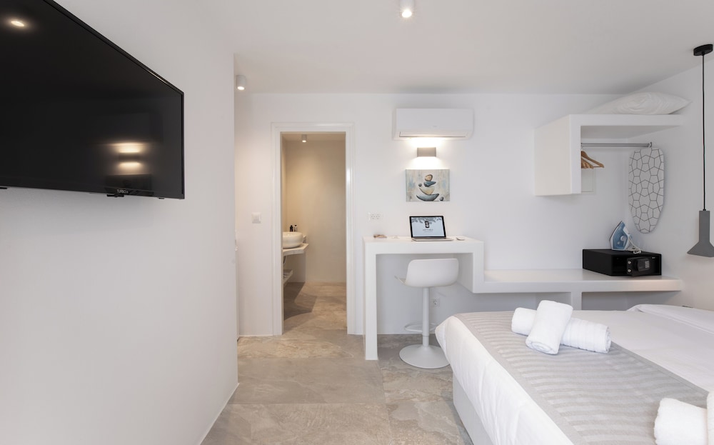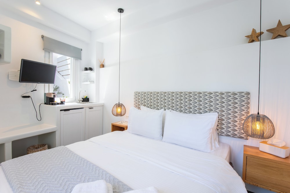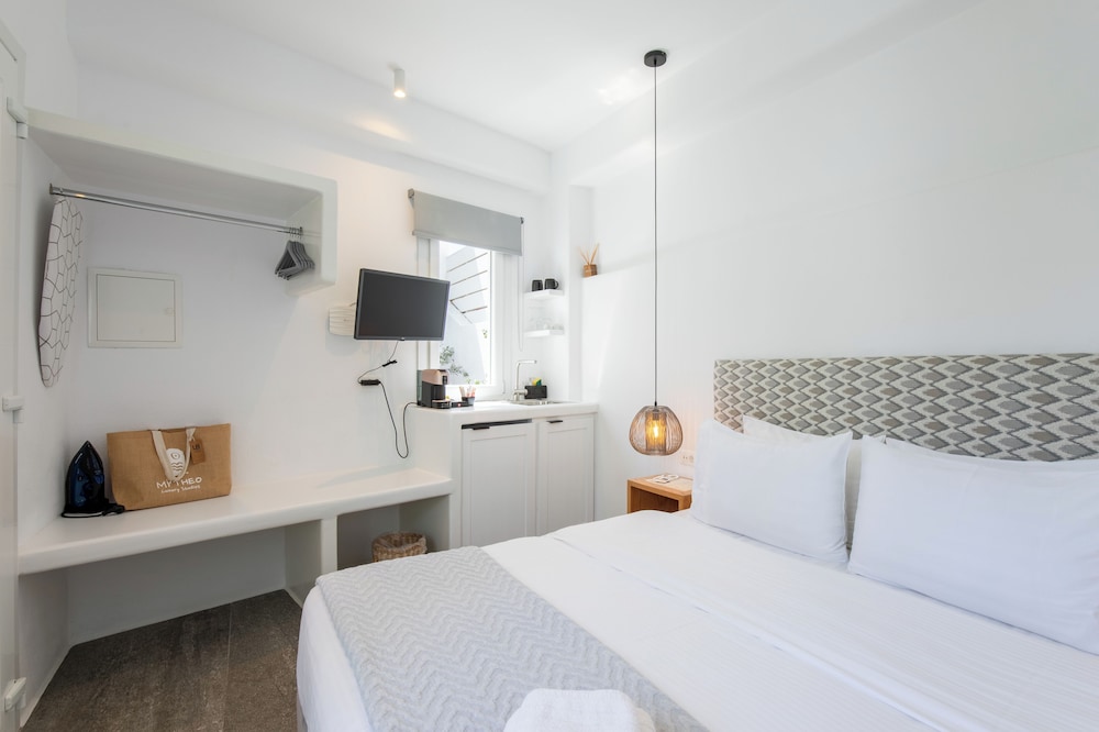 With a stay at Mytheo Luxury Studios, you'll be centrally located in Mykonos, within a 5-minute drive of Mykonos Old Port and Windmills of Mykonos. This aparthotel is 2.4 mi (3.9 km) from Mykonos New Port and 2.9 mi (4.7 km) from Paradise Beach. Make yourself at home in one of the 11 air-conditioned rooms featuring espresso makers and flat-screen televisions. Your Select Comfort bed comes with premium bedding. Complimentary wireless internet access keeps you connected, and digital programming is available for your entertainment. Private bathrooms with showers feature complimentary toiletries and hair dryers. Distances are displayed to the nearest 0.1 mile and kilometer.