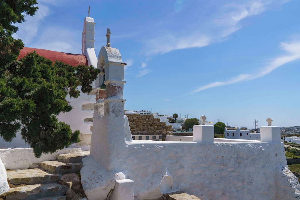With a stay at Cloud Blue in Mykonos, you'll be in the historical district, within a 10-minute walk of Fabrica Square and Windmills of Mykonos. This family-friendly guesthouse is 0.6 mi (0.9 km) from View of Alefkandra and 1.1 mi (1.9 km) from Mykonos Old Port. Make yourself at home in one of the 4 individually decorated guestrooms, featuring kitchens with refrigerators and stovetops. Your pillowtop bed comes with Egyptian cotton sheets. Rooms have private furnished patios. 32-inch Smart televisions with Netflix provide entertainment, while complimentary wireless internet access keeps you connected. Distances are displayed to the nearest 0.1 mile and kilometer.