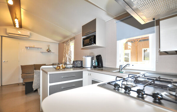 This cosy retreat is part of a leisure park and offers you and your family access to delightful outdoor leisure activities. Plan your activities over relaxed meals and, after an active day, make yourself comfortable on the cosy sofa, play a board game or immerse yourself in your holiday reading.