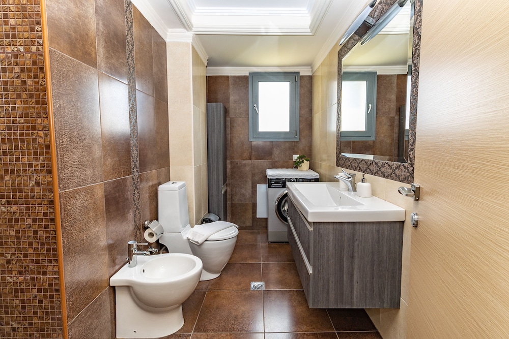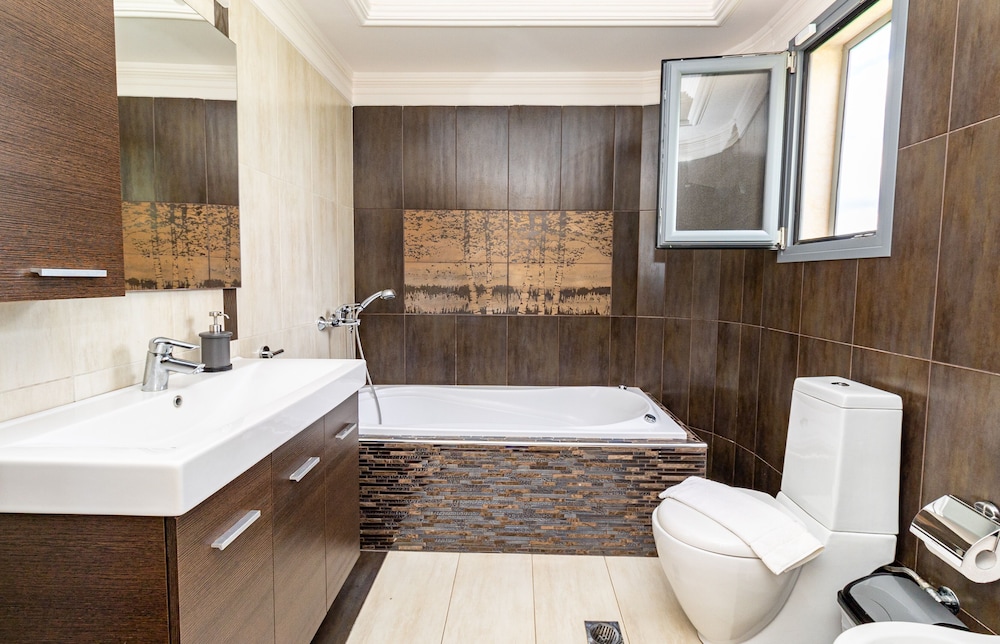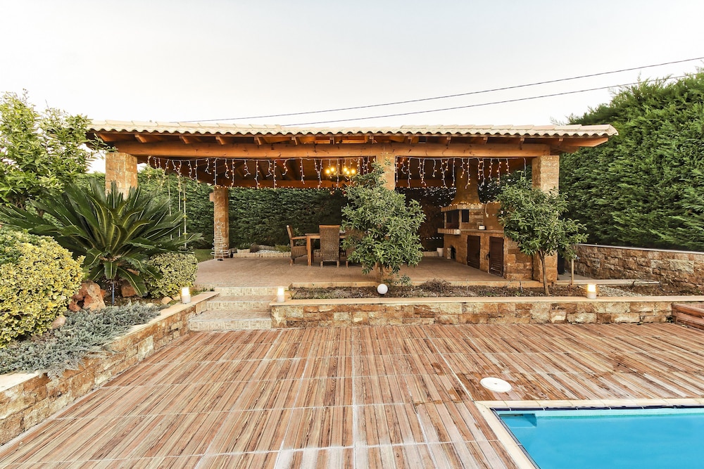 With a stay at Villa Nefeli in Nea Propontida, you'll be within a 15-minute drive of Plagia-Flogita Beach and Ancient Olynthos. This villa is 4.9 mi (7.9 km) from Agjio Mama and 8.7 mi (14 km) from Chlóes Beach. Make yourself at home in one of the 2 air-conditioned rooms featuring fireplaces and private pools. Kitchens are outfitted with full-sized refrigerators/freezers, ovens, and stovetops. 20-inch flat-screen televisions with satellite programming provide entertainment, while complimentary wireless internet access keeps you connected. Conveniences include microwaves and coffee/tea makers. Distances are displayed to the nearest 0.1 mile and kilometer.