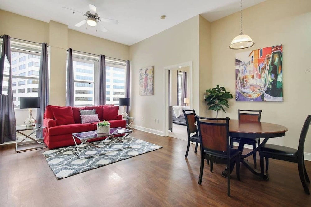 With a stay at this condo in New Orleans (New Orleans Central Business District), you'll be within a 5-minute walk of Canal Street and Bourbon Street. This condo is 0.6 mi (1 km) from Caesars New Orleans Casino and 0.7 mi (1.1 km) from Caesars Superdome. Make yourself comfortable in this individually decorated condo, featuring a kitchen with a refrigerator and an oven. A 50-inch Smart television with digital programming provides entertainment, while complimentary wireless internet access keeps you connected. Conveniences include a separate sitting area and a microwave. Distances are displayed to the nearest 0.1 mile and kilometer.