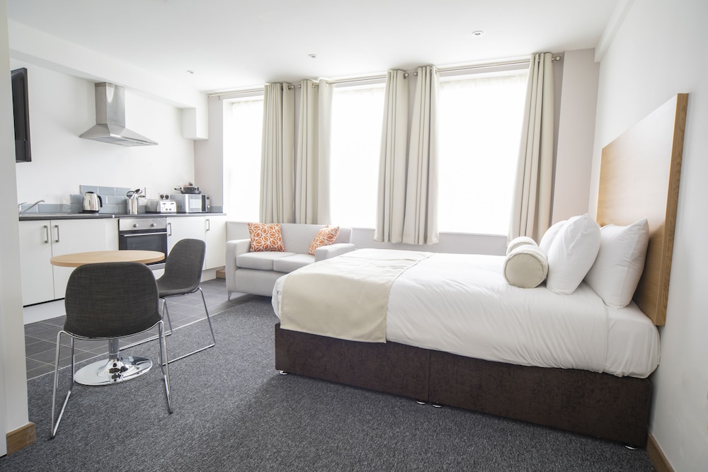 With a stay at Wellington Apartments, you'll be centrally located in Norwich, within a 5-minute walk of Norfolk Broads and James Stuart Garden. This aparthotel is 0.5 mi (0.8 km) from Royal Norfolk Regimental Museum and 0.7 mi (1.1 km) from Norwich University of the Arts. Make yourself at home in one of the 47 guestrooms, featuring kitchens with refrigerators and ovens. 32-inch LCD televisions with digital programming provide entertainment, while complimentary wireless internet access keeps you connected. Conveniences include desks and microwaves, and housekeeping is provided weekly. Distances are displayed to the nearest 0.1 mile and kilometer.