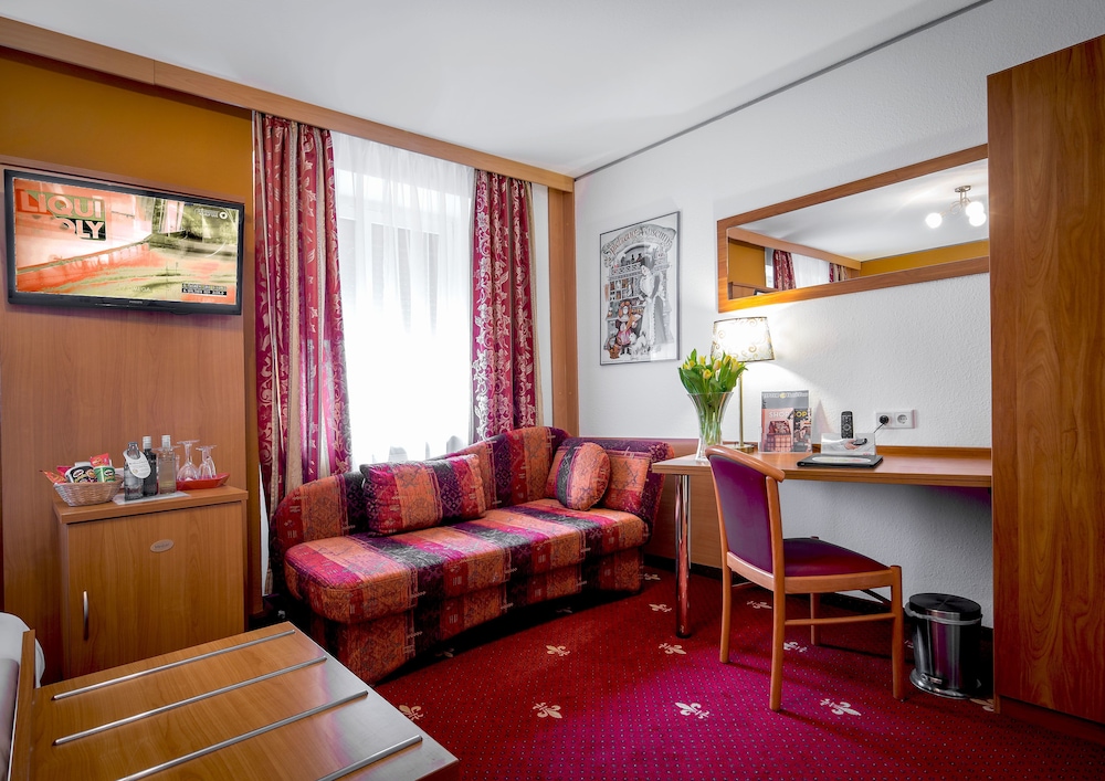 With a stay at Hotel Burgschmiet, you'll be centrally located in Nuremberg, a 4-minute drive from Nuremberg Christmas Market and 13 minutes from NürnbergMesse. This hotel is 7.7 mi (12.4 km) from Playmobil FunPark and 0.4 mi (0.7 km) from Albrecht Duerer House. Make yourself at home in one of the 40 guestrooms featuring minibars and LCD televisions. Complimentary wireless internet access is available to keep you connected. Bathrooms feature showers, complimentary toiletries, and hair dryers. Conveniences include phones, as well as safes and desks. Distances are displayed to the nearest 0.1 mile and kilometer.