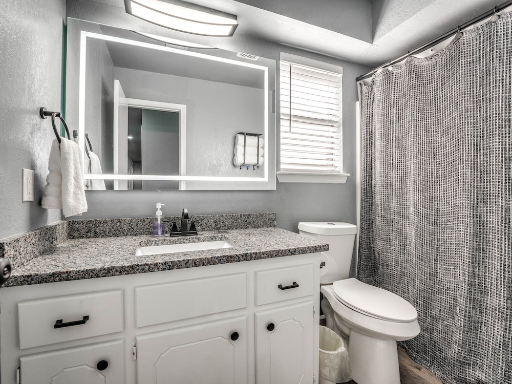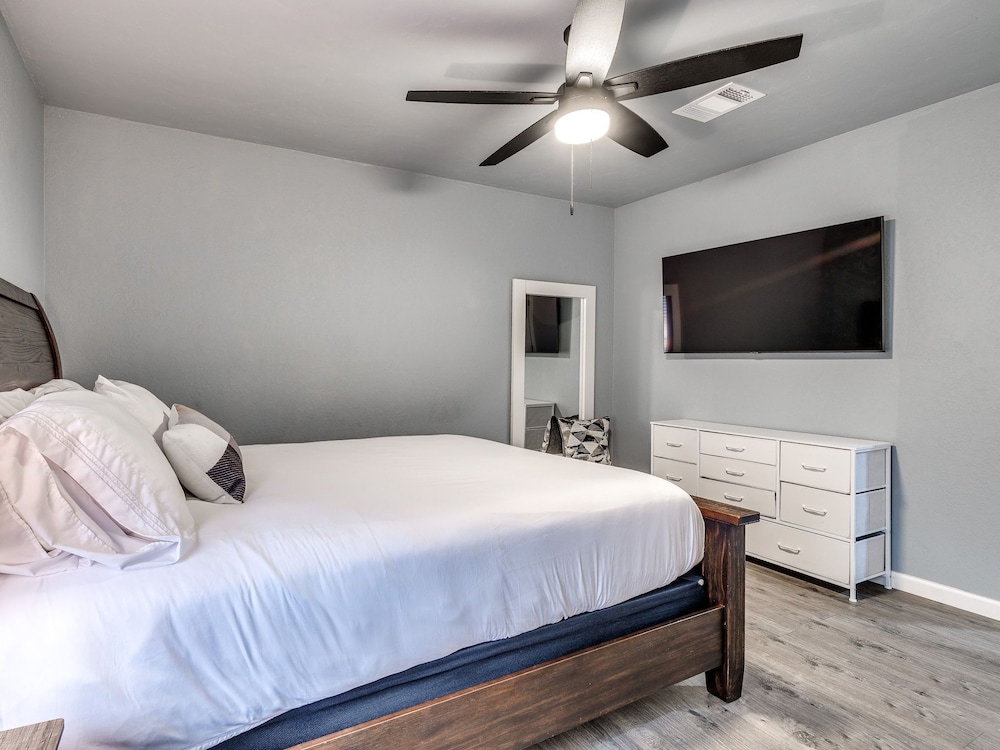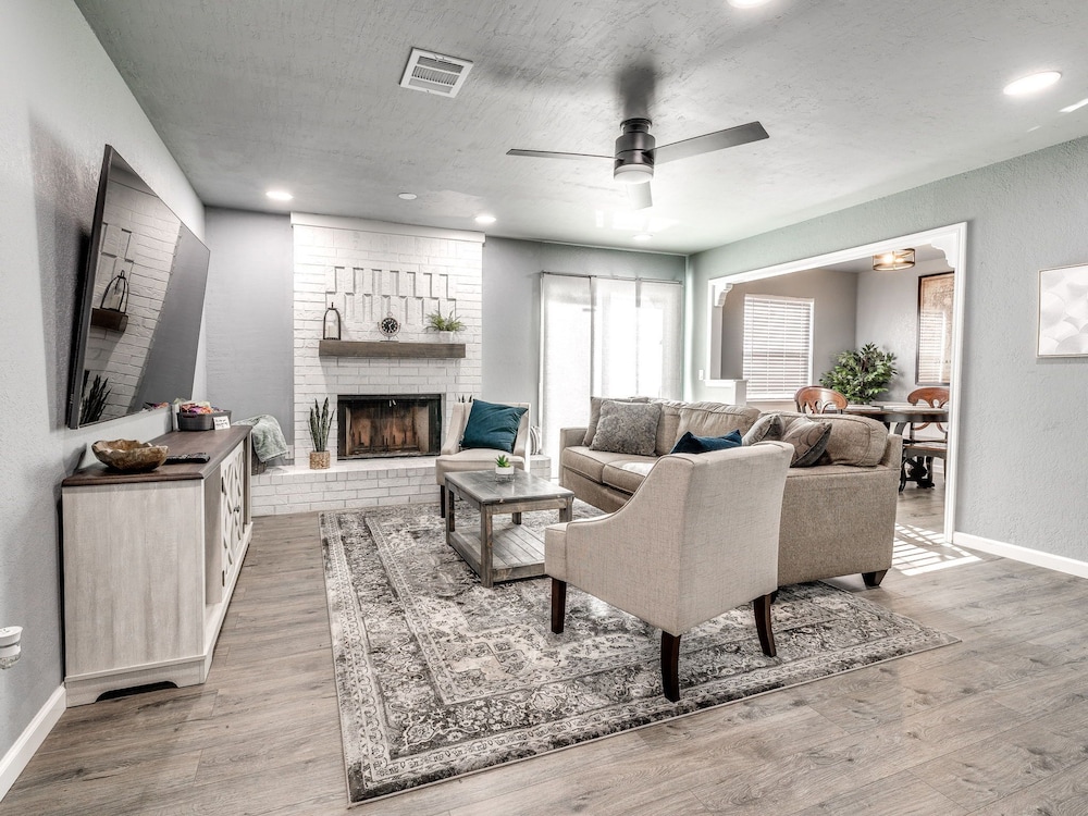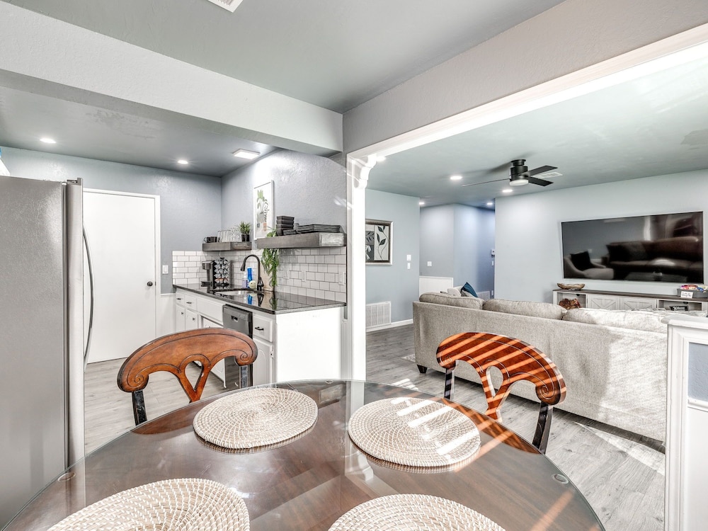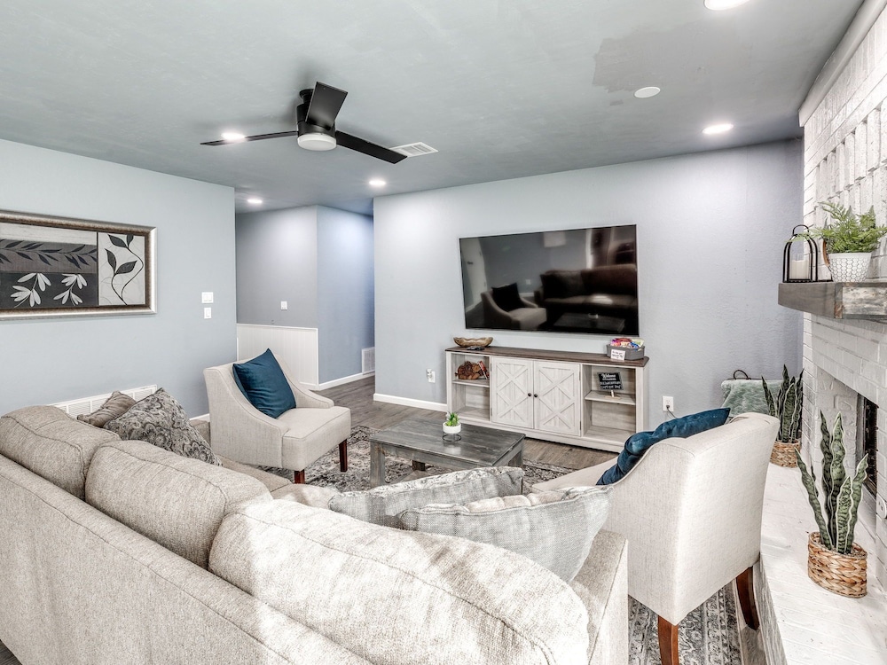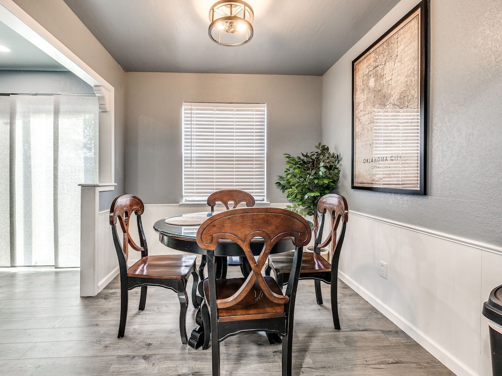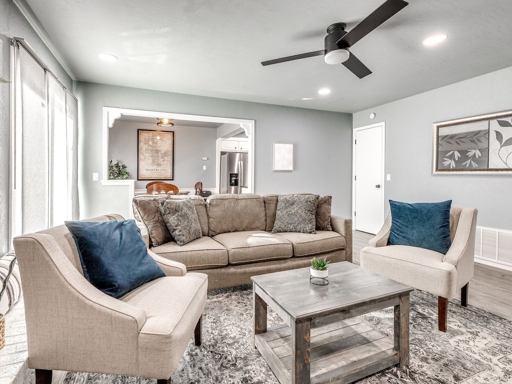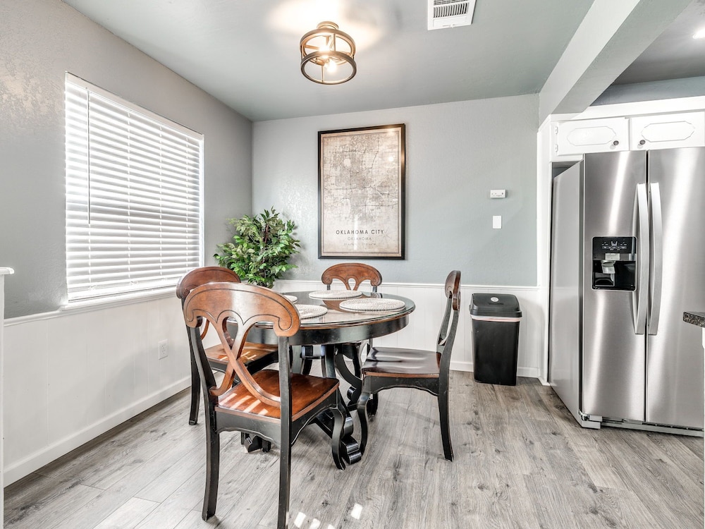 With a stay at this vacation home in Oklahoma City (South Oklahoma City), you'll be within a 15-minute drive of Paycom Center and Oklahoma City Community College. This vacation home is 14.7 mi (23.7 km) from Tinker Air Force Base and 17.5 mi (28.2 km) from Oklahoma City Zoo. Make yourself comfortable in this individually decorated vacation home, featuring a kitchen with a refrigerator and an oven. There's a private furnished patio. A 75-inch Smart television with digital programming provides entertainment, while complimentary wireless internet access keeps you connected. Conveniences include a microwave and a coffee/tea maker. Distances are displayed to the nearest 0.1 mile and kilometer.