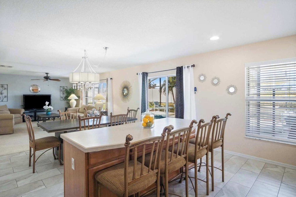 When you stay at this vacation home in Davenport, you'll be next to a golf course, within a 15-minute drive of Flamingo Crossings Town Center and Reunion Resort Golf Course. This golf vacation home is 12.3 mi (19.8 km) from Walt Disney World® Resort and 13 mi (20.9 km) from Old Town. Treat yourself to a stay in this individually decorated vacation home, which features a private pool and an outdoor private hot tub. There's a private furnished lanai. A kitchen is outfitted with a refrigerator, an oven, and a stovetop. A 42-inch flat-screen television is provided, with digital programming available. Distances are displayed to the nearest 0.1 mile and kilometer.