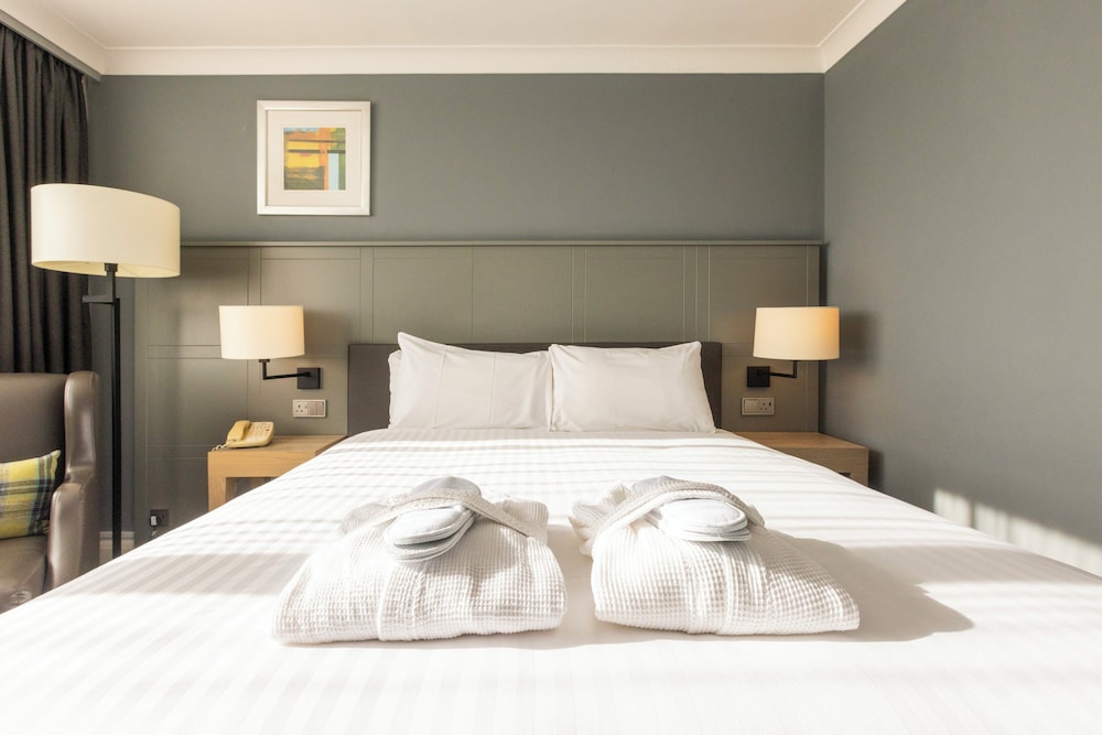When you stay at Holiday Inn Glasgow Airport by IHG in Paisley, you'll be connected to the airport, within a 15-minute drive of University of Glasgow and OVO Hydro. This hotel is 16.2 mi (26 km) from Loch Lomond and The Trossachs National Park and 18.2 mi (29.4 km) from Loch Lomond. Stay in one of 300 guestrooms featuring flat-screen televisions. Satellite programming and video-game consoles are provided for your entertainment, while complimentary wired internet access keeps you connected. Private bathrooms with shower/tub combinations feature complimentary toiletries and hair dryers. Conveniences include phones, as well as safes and desks. Distances are displayed to the nearest 0.1 mile and kilometer.