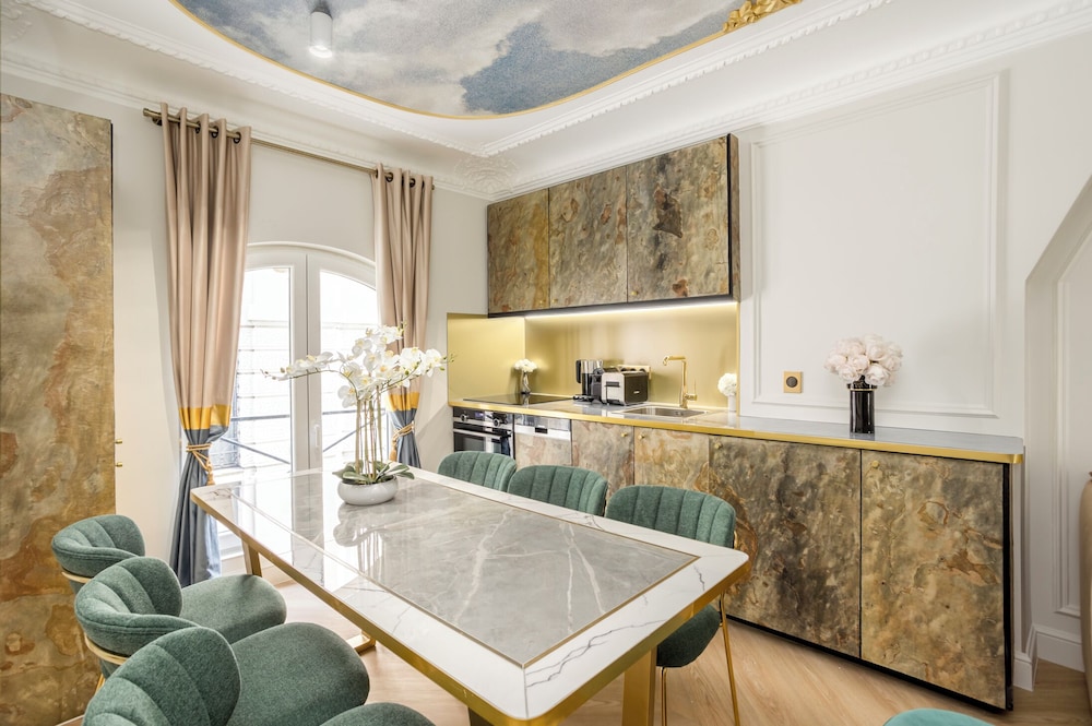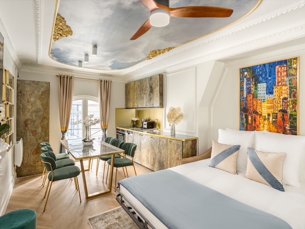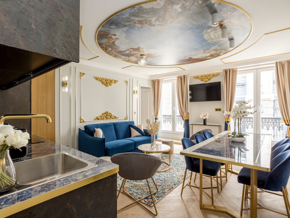 A stay at Merveil Luxury Suites - Rougemont I-II-III places you in the heart of Paris, a 4-minute drive from Palais Garnier and 6 minutes from Champs-Élysées. This family-friendly apartment is 1.9 mi (3 km) from Notre-Dame and 2.4 mi (3.9 km) from Luxembourg Gardens. Make yourself at home in one of the 3 individually decorated guestrooms, featuring kitchens with refrigerators and ovens. Your room comes with a pillowtop bed. Complimentary wireless internet access is available to keep you connected. Conveniences include safes and desks, and housekeeping is provided on request. Distances are displayed to the nearest 0.1 mile and kilometer.