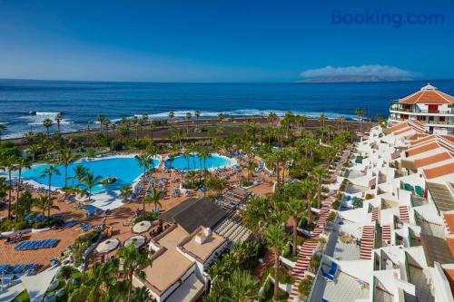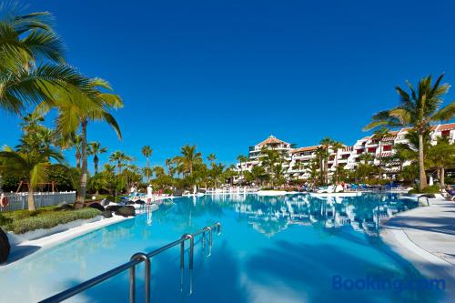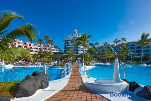 Parque Santiago IV has a restaurant, fitness center, a bar and garden in Playa de las Americas. Featuring a 24-hour front desk, this property also provides guests with a water park. The accommodation has a hot tub, free WiFi and family rooms. All rooms at the hotel come with a seating area, a flat-screen TV with satellite channels, a kitchen, a dining area and a private bathroom. All rooms have a safety deposit box, while some rooms also offer a balcony and others also have pool views. At Parque Santiago IV all rooms include bed linen and towels. The accommodation has a playground. Popular points of interest near Parque Santiago IV include El Bunker Beach, Camison Beach and Playa de las Americas. The nearest airport is Tenerife South Airport, 12 miles from the hotel.