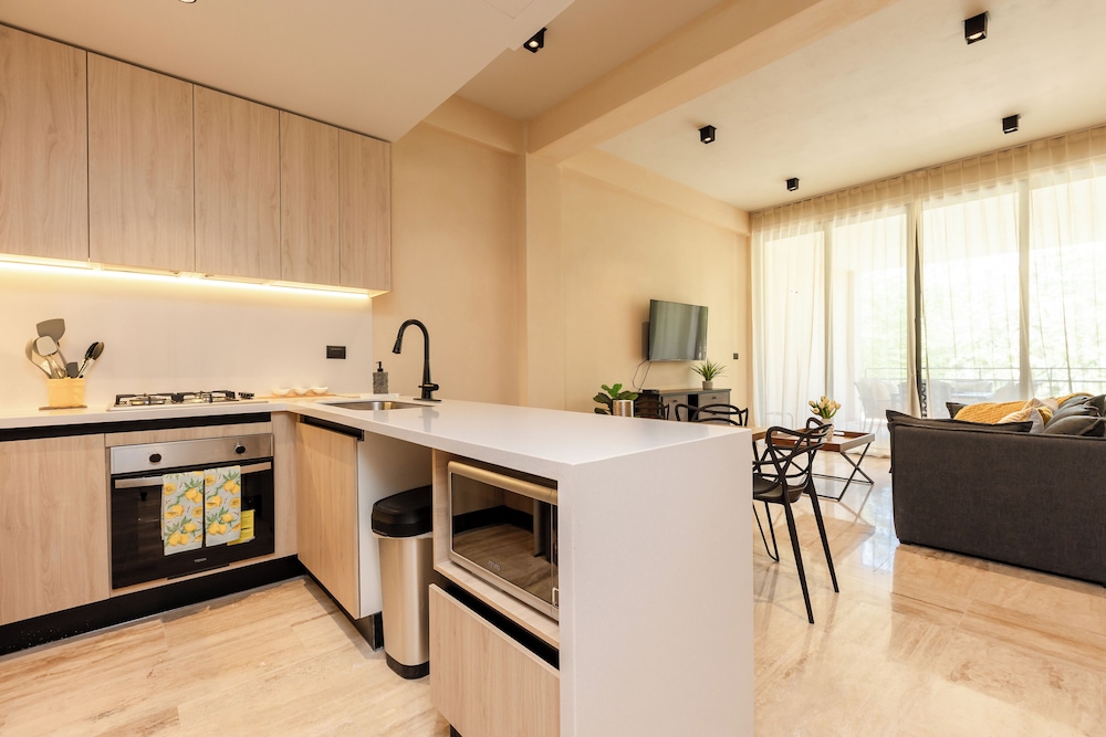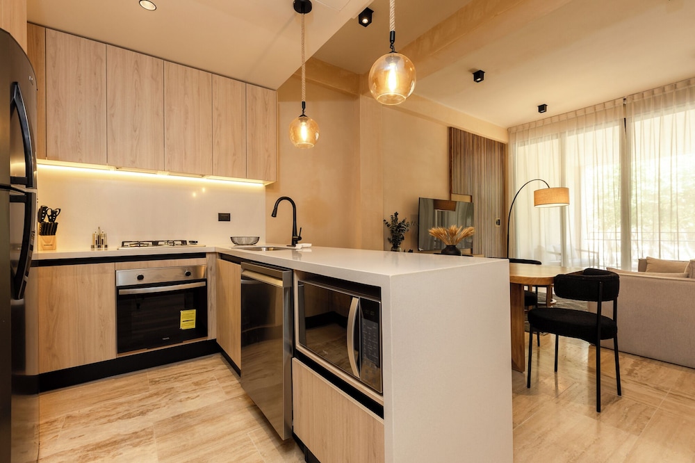 With a stay at Lumina at The Village Luxury Residences in Corasol in Playa del Carmen (Corasol), you'll be a 4-minute drive from El Camaleón Mayakoba Golf Course and 5 minutes from Quinta Avenida. This family-friendly apartment is 3.3 mi (5.4 km) from Playa del Carmen Main Beach and 7.5 mi (12.1 km) from Maroma Beach. Make yourself at home in one of the 16 individually decorated guestrooms, featuring kitchens with full-sized refrigerators/freezers and ovens. Your bed comes with down comforters and premium bedding. Smart televisions with digital programming provide entertainment, while complimentary wireless internet access keeps you connected. Conveniences include separate sitting areas and microwaves, and you can also request cribs/infant beds (complimentary). Distances are displayed to the nearest 0.1 mile and kilometer.