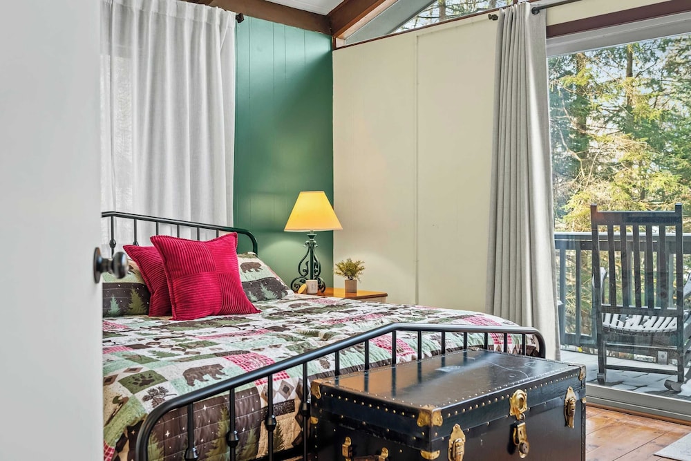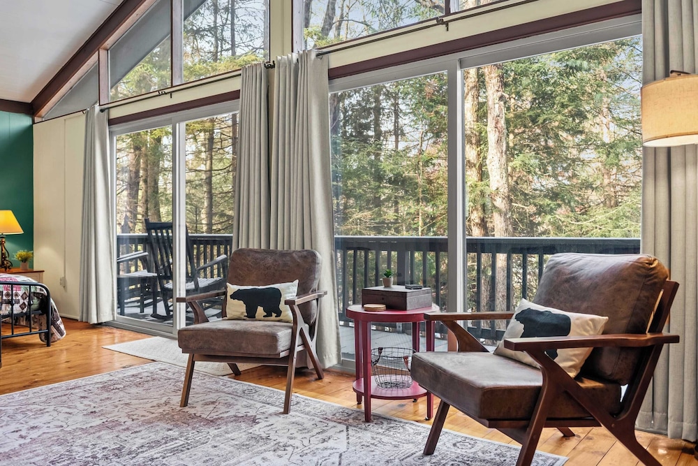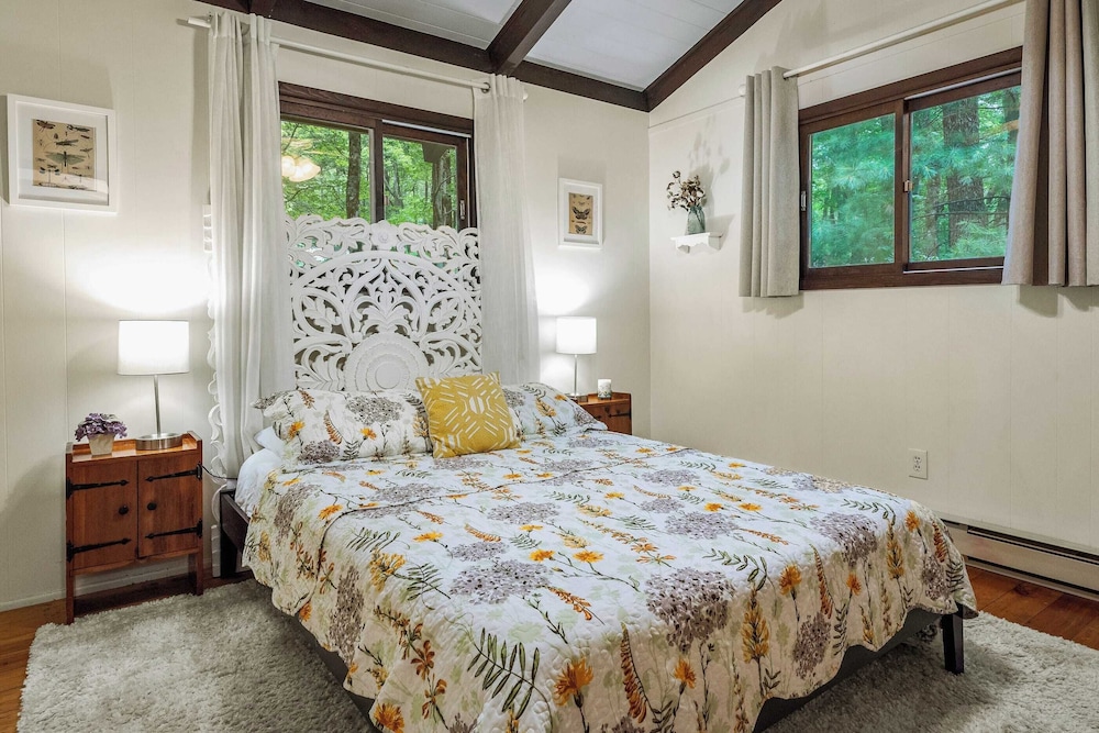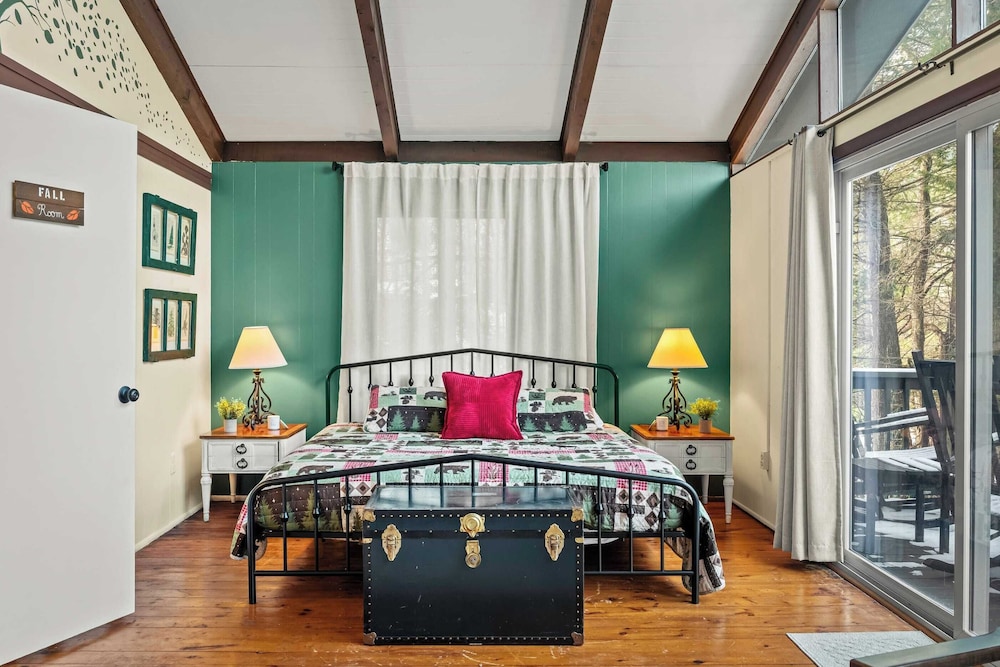 When you stay at this cottage in Pocono Pines, you'll be on the beach, within a 15-minute drive of Kalahari and Mount Airy Casino. This cottage is 11.3 mi (18.2 km) from Camelback Ski Area and 9.7 mi (15.6 km) from Great Wolf Lodge Waterpark. Make yourself comfortable in this air-conditioned cottage, which features a fireplace. There's a private balcony. A kitchen is outfitted with a refrigerator, an oven, and a stovetop. Conveniences include a microwave and a washer/dryer. Distances are displayed to the nearest 0.1 mile and kilometer.