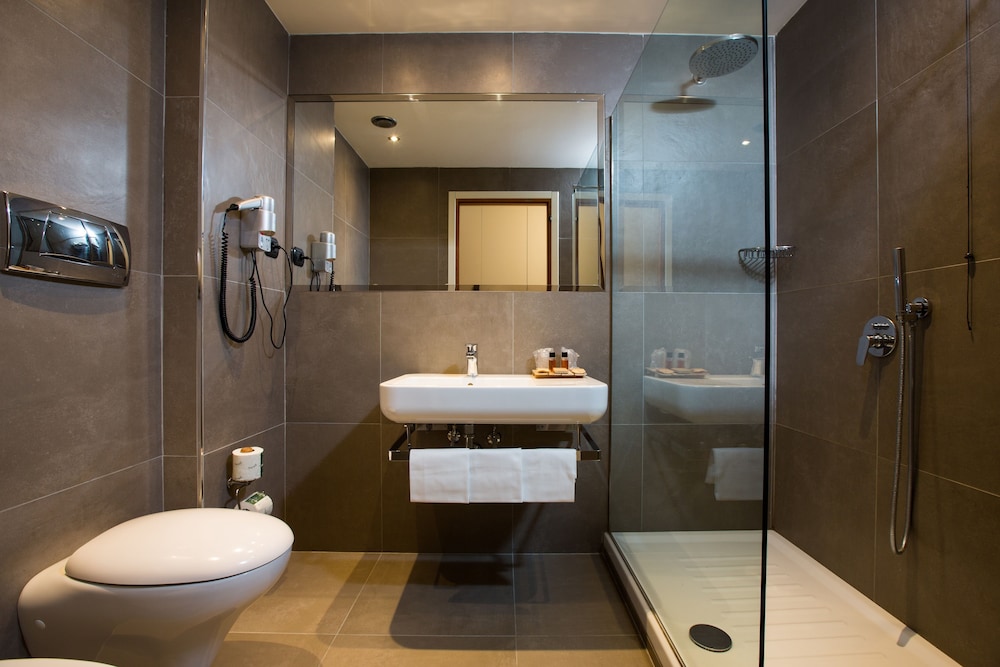 When you stay at Hotel Toscana Ambassador in Poggibonsi, you'll be connected to a shopping center, within a 5-minute drive of Church of San Lorenzo and Magione Castle. This hotel is 2.2 mi (3.6 km) from Fountain of Fate and 2.3 mi (3.7 km) from Archeodromo di Poggibonsi. Stay in one of 90 guestrooms featuring flat-screen televisions. Complimentary wireless internet access keeps you connected, and satellite programming is available for your entertainment. Private bathrooms with bathtubs or showers feature rainfall showerheads and complimentary toiletries. Conveniences include safes and desks, and housekeeping is provided daily. Distances are displayed to the nearest 0.1 mile and kilometer.