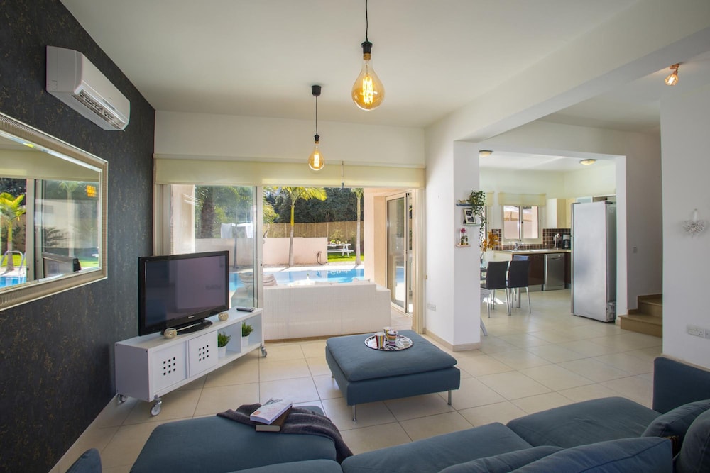 Located in Paralimni, this villa is within a 15-minute drive of Fig Tree Bay and Nissi Beach. This villa is 0.3 mi (0.5 km) from Protaras Coastal Promenade and 0.8 mi (1.3 km) from Magic Dancing Waters. Make yourself comfortable in your villa, which features a DVD player. Satellite programming along with a video-game console are provided for your entertainment. Distances are displayed to the nearest 0.1 mile and kilometer.