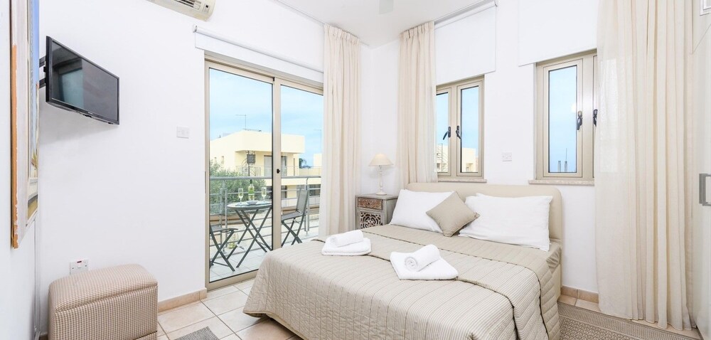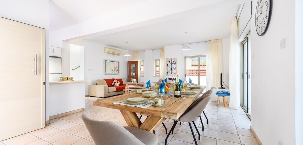 Located in Protaras (Protaras City Center), Sunrise Bay Villa #1 is within a 5-minute walk of Fig Tree Bay and Protaras Coastal Promenade. This farm stay is 10.7 mi (17.2 km) from Nissi Beach and 10.9 mi (17.6 km) from Makronissos Beach. Make yourself at home in one of the air-conditioned rooms featuring private pools and flat-screen televisions. Rooms have private balconies or patios. Kitchens are outfitted with refrigerators, ovens, and stovetops. Satellite programming and DVD players are provided for your entertainment, while complimentary wireless Internet access keeps you connected. Private bathrooms have deep soaking bathtubs. Distances are displayed to the nearest 0.1 mile and kilometer.