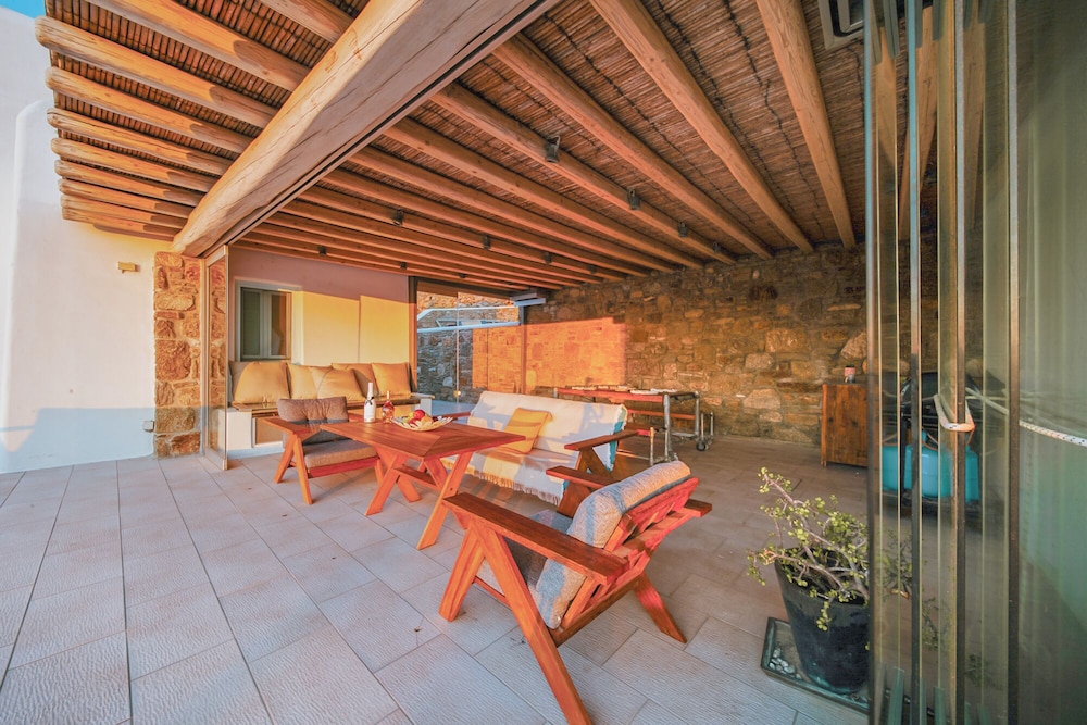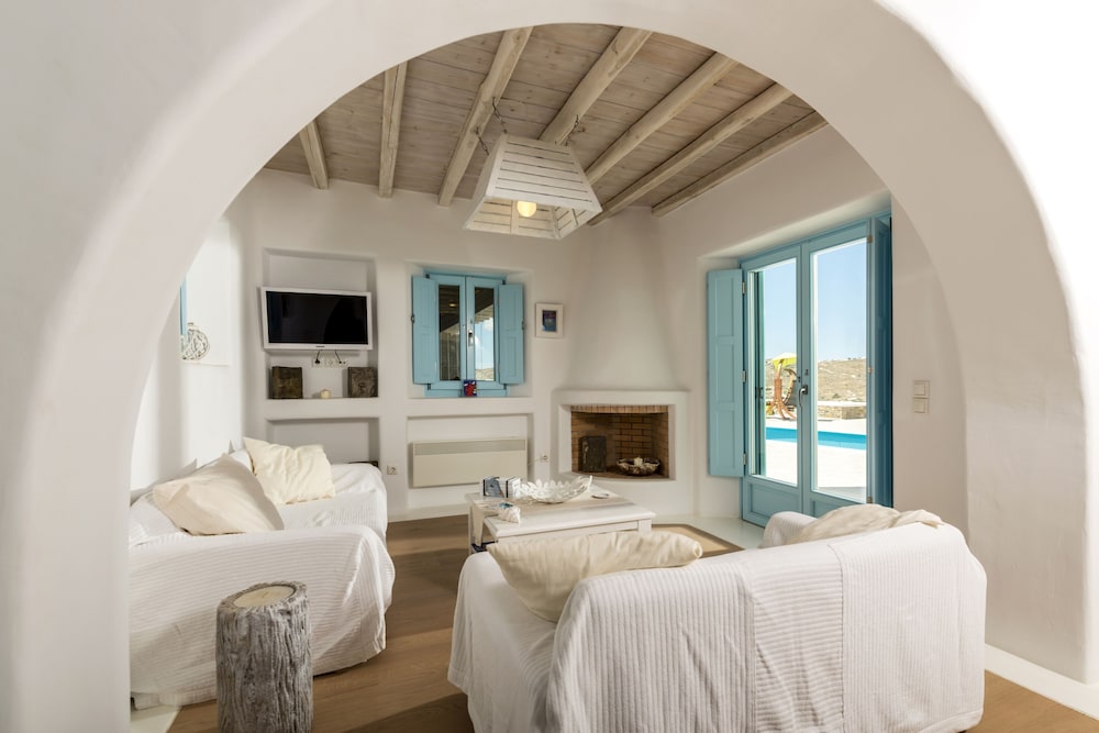 When you stay at this villa in Mykonos, you'll be in the entertainment district, a 5-minute drive from Windmills of Mykonos and 6 minutes from Mykonos Old Port. This luxury villa is 4.1 mi (6.6 km) from Mykonos New Port and 2.9 mi (4.6 km) from Paradise Beach. Treat yourself to a stay in this individually decorated villa, which features a private pool. Your memory foam bed comes with Egyptian cotton sheets. There's a private furnished balcony/patio. A kitchen is outfitted with a full-sized refrigerator/freezer, an oven, and a stovetop. Complimentary wireless internet access keeps you connected, and cable programming is available for your entertainment. Distances are displayed to the nearest 0.1 mile and kilometer.