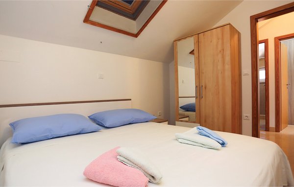 This beautiful holiday home is the only house in Miljanaa Bay, which is located on the island of Bra. The courtyard of the house is connected to the marvellous pebble beach by steps. The domicile is secluded on the 10000 m² natural plot and offers a relaxing holiday in nature. This accommodation is spread over two floors with external stairs. On the ground floor are: Living room with kitchen, dining room, bathroom and exit to a large terrace with sea views. The attic has a sloping roof of 110 cm and on this floor are the three bedrooms and the bathroom. The holiday home is powered exclusively by solar energy, so the electricity supply is limited. The friendly owners live about 4 km away and are available at any time. There is an approx. 3300 m long gravel track to the house, so an off-road vehicle is recommended for access. If required, you can hire a boat from the house owner at no obligation and at an additional cost. The centre of Puie can be reached quickly by car.