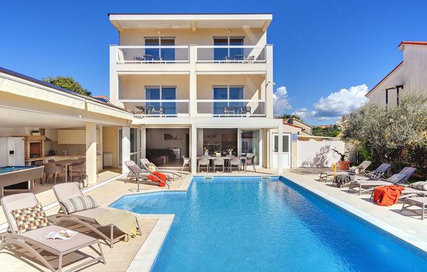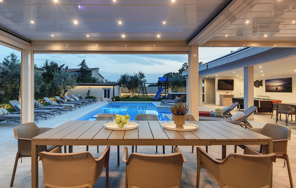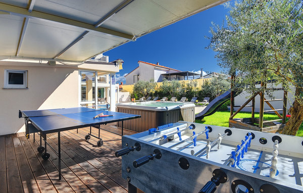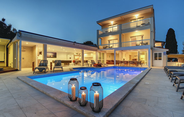 Luxury Villa Klen is located in Pula, a town in Istria known primarily for its rich cultural heritage. The villa has a total of 7 bedrooms, each with its own bathroom, and can accommodate up to 15 people. The open floor plan on the ground floor is truly breathtaking. There you will find a bedroom, the large living room with SAT TV and stereo system, the fully equipped kitchen that offers everything you could need on vacation. On the ground floor you will also find the dining area and an additional bathroom. The ground floor has direct access to the pool, where you can enjoy the warm Istrian sun all day long. Next to the pool is the summer kitchen with a pool table, table tennis, darts and, of course, a barbecue. Other bedrooms are spread over the first and second floor, each with a double bed and a private balcony with a lounge area and a view of the surroundings and the pool. On the second floor there are 4 large bedrooms. On the second floor there are 2 bedrooms. One of them is the master bedroom with a double bed and a sofa bed. Here you will be able to enjoy the magnificent view of the sea. All bedrooms are air-conditioned and have SAT TV. A special feature of Villa Klen is that it has a charging station for electric vehicles.