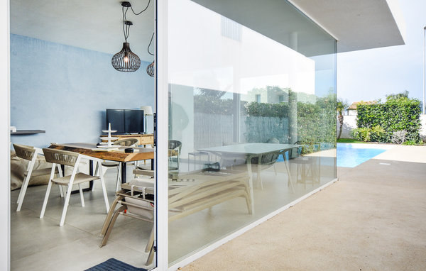The house welcomes you just a few steps from the beach. Have a great time with your loved ones in the bright and modern rooms with tasteful furnishings in subtle colours. Relax on the sofa with a view of the private pool, where you can also sit together in the evening, watch a film and chat for a long time.