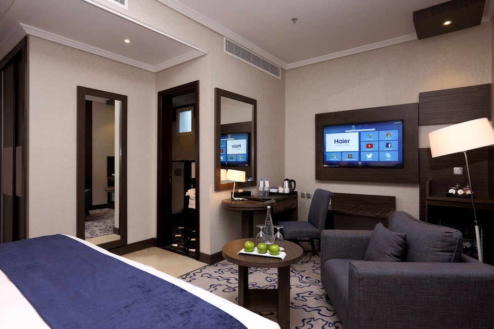 Featured amenities include a 24-hour business center, complimentary newspapers in the lobby, and dry cleaning/laundry services. This hotel has 4 meeting rooms available for events. A roundtrip airport shuttle is provided for a surcharge (available 24 hours), and free self parking is available onsite. Pamper yourself with a visit to the spa, which offers massages. You're sure to appreciate the recreational amenities, including a health club, an indoor pool, and a sauna. Additional features at this hotel include complimentary wireless internet access, concierge services, and barbecue grills. Stop by the hotel's restaurant for lunch or dinner. Dining is also available at the coffee shop/cafe, and 24-hour room service is provided. Buffet breakfasts are available daily from 6:00 AM to 10:30 AM for a fee. This property has received its official star rating from Saudi Ministry of Tourism.- Fee for buffet breakfast: approximately SAR 59 per person