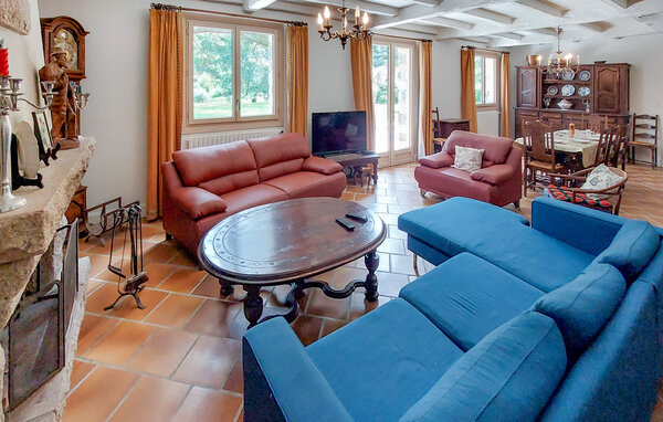 On the banks of the river L'Isole and surrounded by woodland, this carefully restored 19th century stone house offers plenty of space for a sociable holiday with friends and family. Prepare your meals together in the spacious kitchen, look forward to cheerful get-togethers in the cosy dining room and get together for a games evening or a glass of wine in the cosy living room.