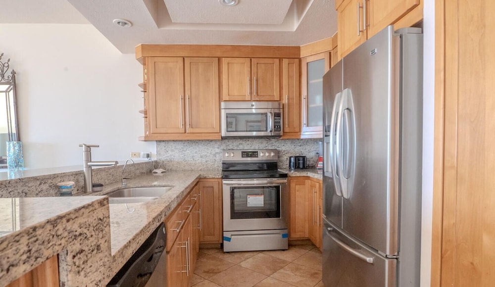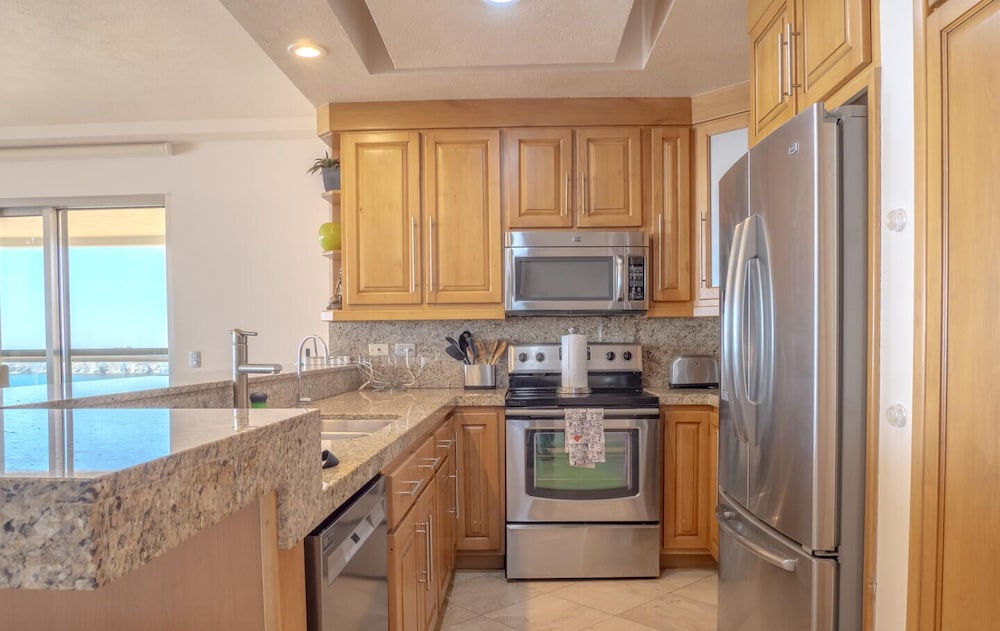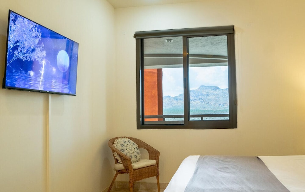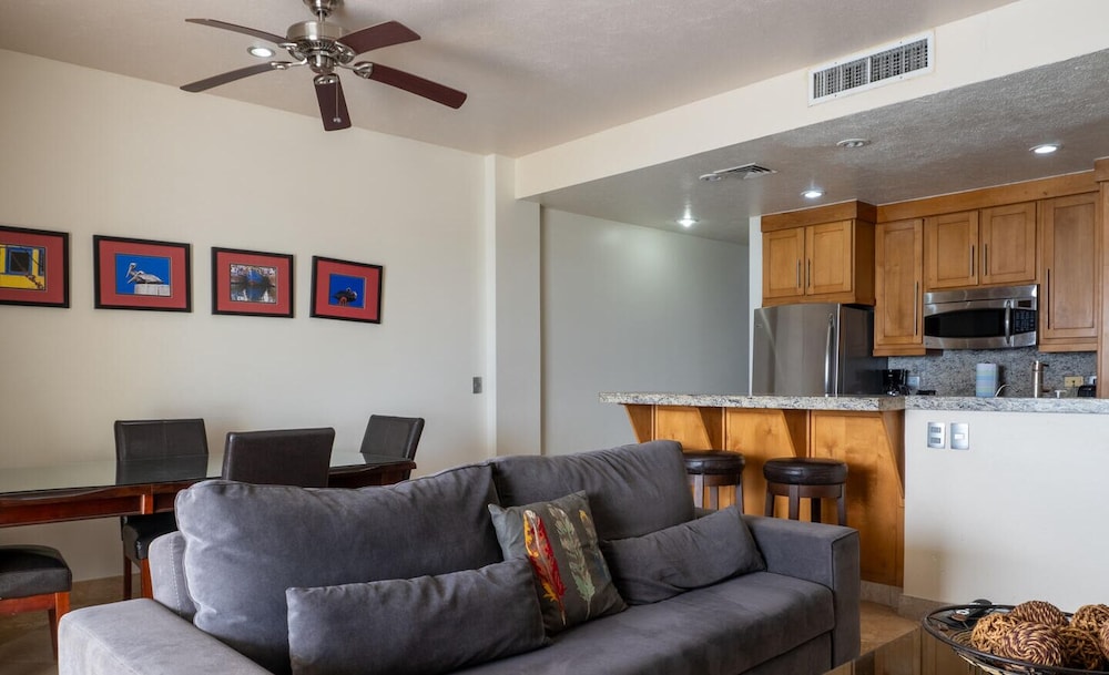 When you stay at this condo in San Carlos, you'll be next to a golf course, within a 5-minute drive of Los Algodones and Islands and Protected Areas of the Gulf of California. This golf condo is 1.8 mi (2.8 km) from La Manga and 2.7 mi (4.3 km) from Cerro Tetakawi. Make yourself comfortable in this individually decorated condo, featuring a kitchen with a refrigerator and an oven. There's a private balcony. Complimentary wireless internet access keeps you connected, and cable programming is available for your entertainment. Conveniences include a separate sitting area and a microwave. Distances are displayed to the nearest 0.1 mile and kilometer.