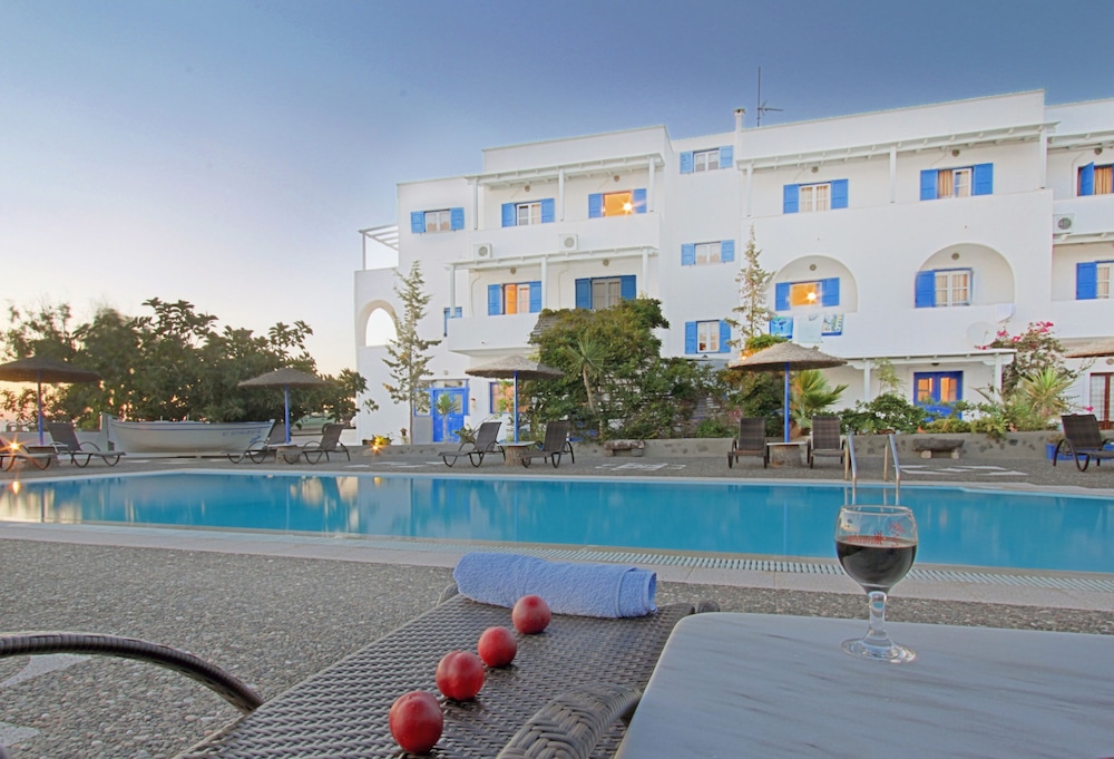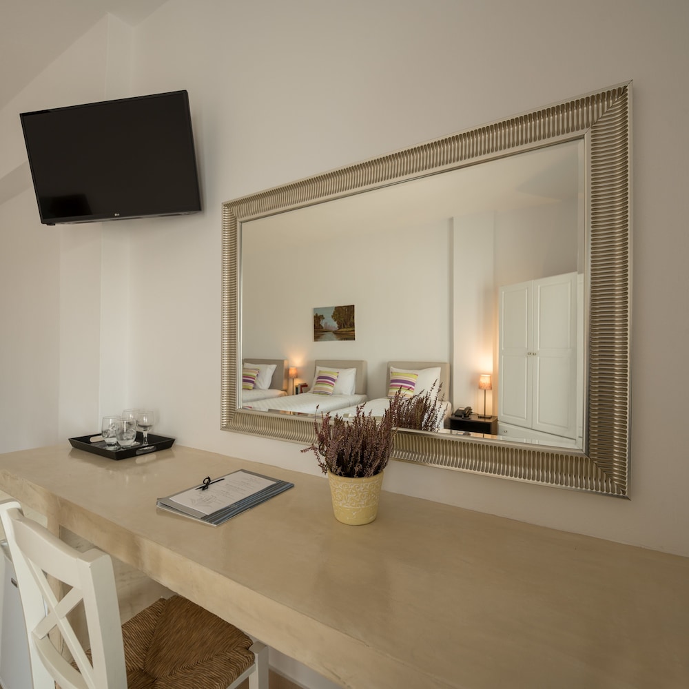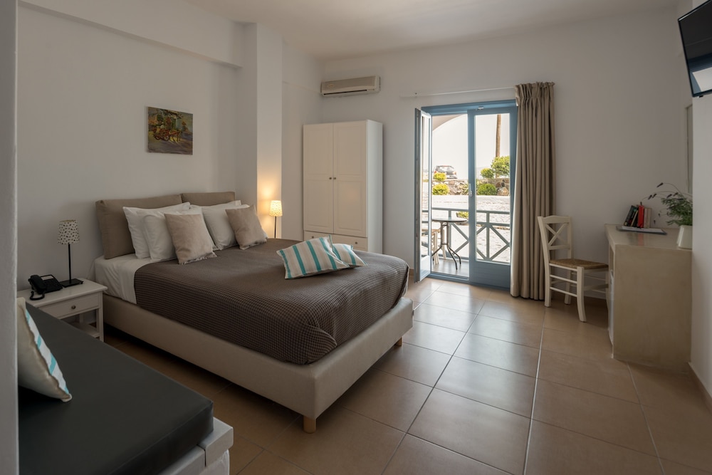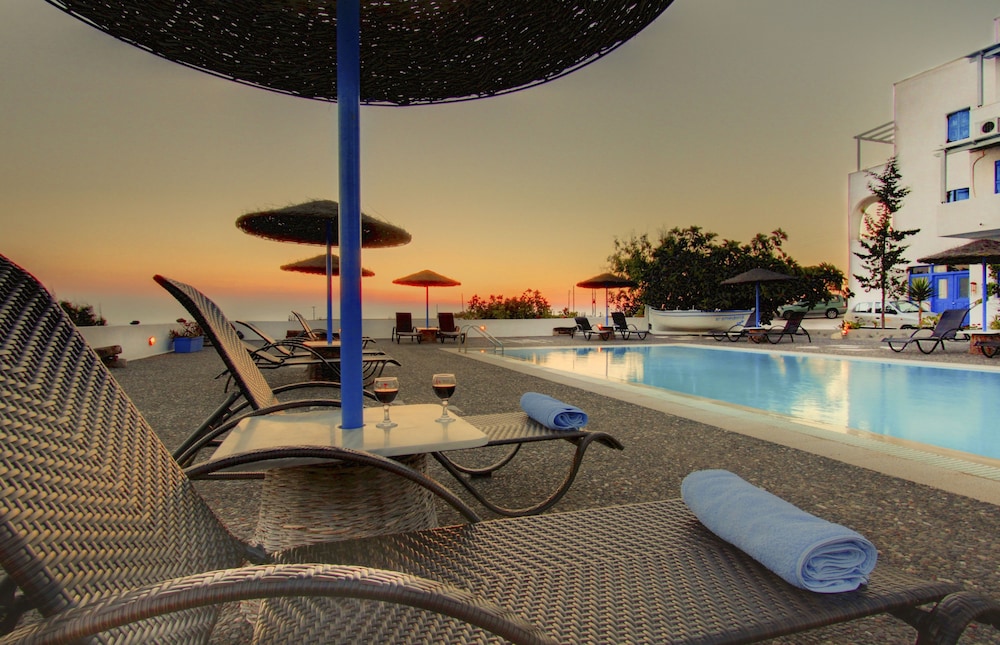 When you stay at Caldera Romantica in Santorini, you'll be near the beach, within a 15-minute drive of Santorini Caldera and Athinios Port. This hotel is 5.5 mi (8.9 km) from Perissa Beach and 8.5 mi (13.6 km) from Kamari Beach. Make yourself at home in one of the 22 air-conditioned rooms featuring refrigerators. Rooms have private balconies. Complimentary wireless internet access is available to keep you connected. Private bathrooms with showers feature complimentary toiletries and hair dryers. Distances are displayed to the nearest 0.1 mile and kilometer.