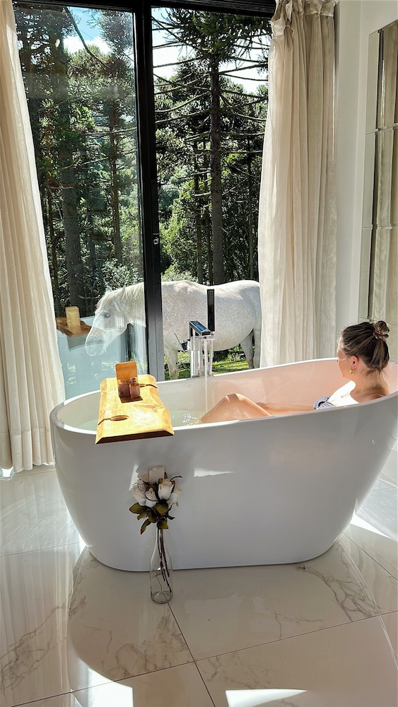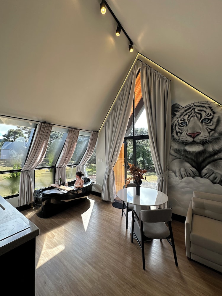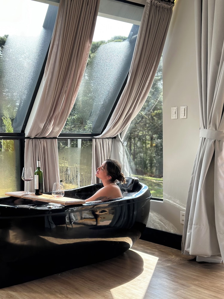 Located in São Joaquim, Morada Reino Encantado is on the riverwalk, within a 15-minute drive of Parque Nacional da Uva and Vivalti Vinícola. This cabin is 4.8 mi (7.7 km) from Villa Francioni Winery and 11.8 mi (19 km) from Snow Valley. Make yourself at home in one of the 2 individually decorated guestrooms, featuring kitchens with stovetops and microwaves. Rooms have private patios. Complimentary wireless internet access keeps you connected, and flat-screen televisions are provided for your entertainment. Private bathrooms with separate bathtubs and showers feature jetted bathtubs and rainfall showerheads. Distances are displayed to the nearest 0.1 mile and kilometer.