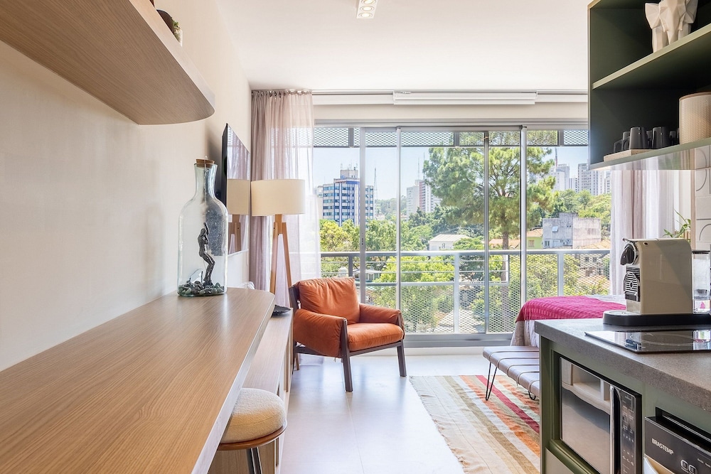 With a stay at this apartment in São Paulo (Pinheiros), you'll be within a 5-minute drive of Paulista Avenue and Oscar Freire Street. This apartment is 3.1 mi (5.1 km) from Allianz Parque and 2.5 mi (4.1 km) from Ibirapuera Park. Make yourself comfortable in this apartment, which has a kitchen. Conveniences include a desk and a refrigerator. Distances are displayed to the nearest 0.1 mile and kilometer.
