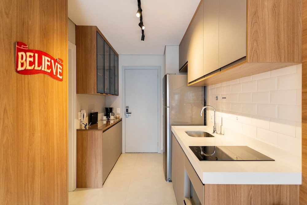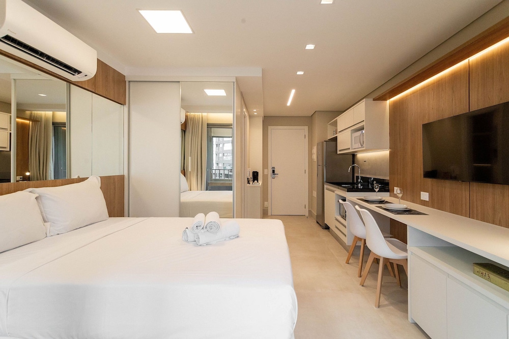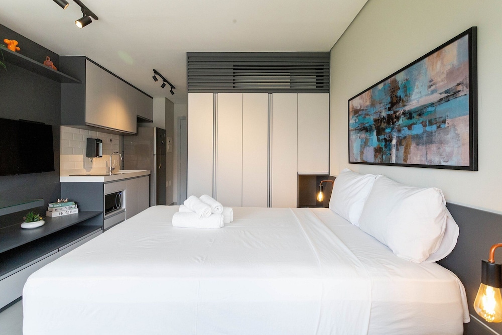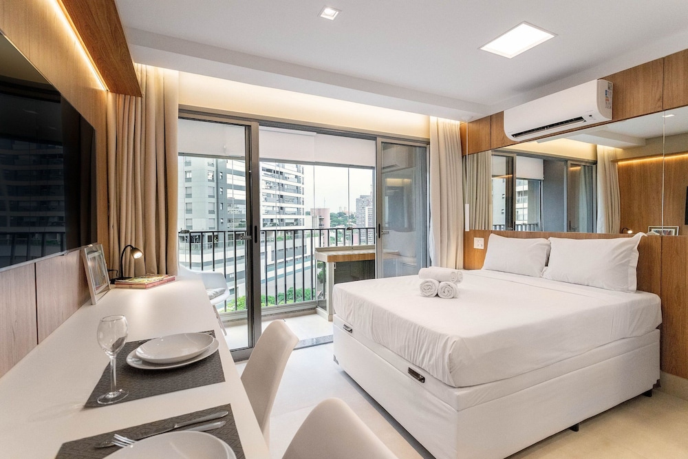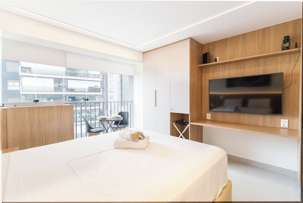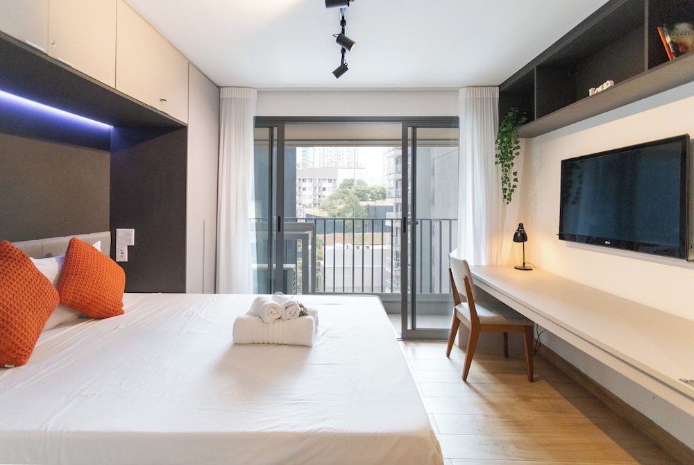 With a stay at this apartment in São Paulo (Pinheiros), you'll be within a 5-minute drive of Allianz Parque and Paulista Avenue. This apartment is 3.2 mi (5.2 km) from Ibirapuera Park and 5.1 mi (8.1 km) from Rua 25 de Marco. Your apartment features a Smart TV. Complimentary wireless internet access keeps you connected, and satellite programming is available for your entertainment. The bathroom features a bathtub or shower with a rainfall showerhead. Conveniences include an iron/ironing board and blackout drapes/curtains. Distances are displayed to the nearest 0.1 mile and kilometer.