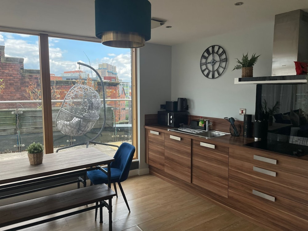 With a stay at this apartment, you'll be centrally located in Sheffield, within a 15-minute drive of Peak District National Park and Sheffield and Tinsley Canal Trail. This apartment is 0.4 mi (0.6 km) from Ponds Forge International Sports Centre and 0.6 mi (1 km) from Sheffield Winter Garden. Make yourself comfortable in this individually decorated apartment, featuring a kitchen with a full-sized refrigerator/freezer and an oven. A 50-inch Smart television with digital programming provides entertainment, while complimentary wireless internet access keeps you connected. Conveniences include a microwave and a washer/dryer. Distances are displayed to the nearest 0.1 mile and kilometer.