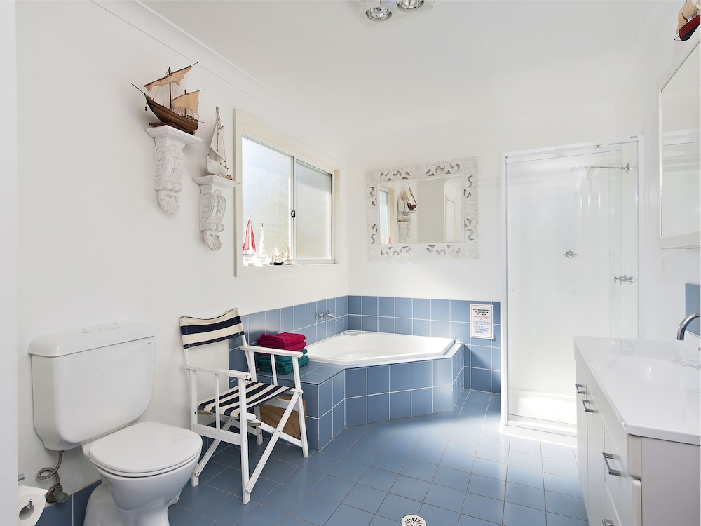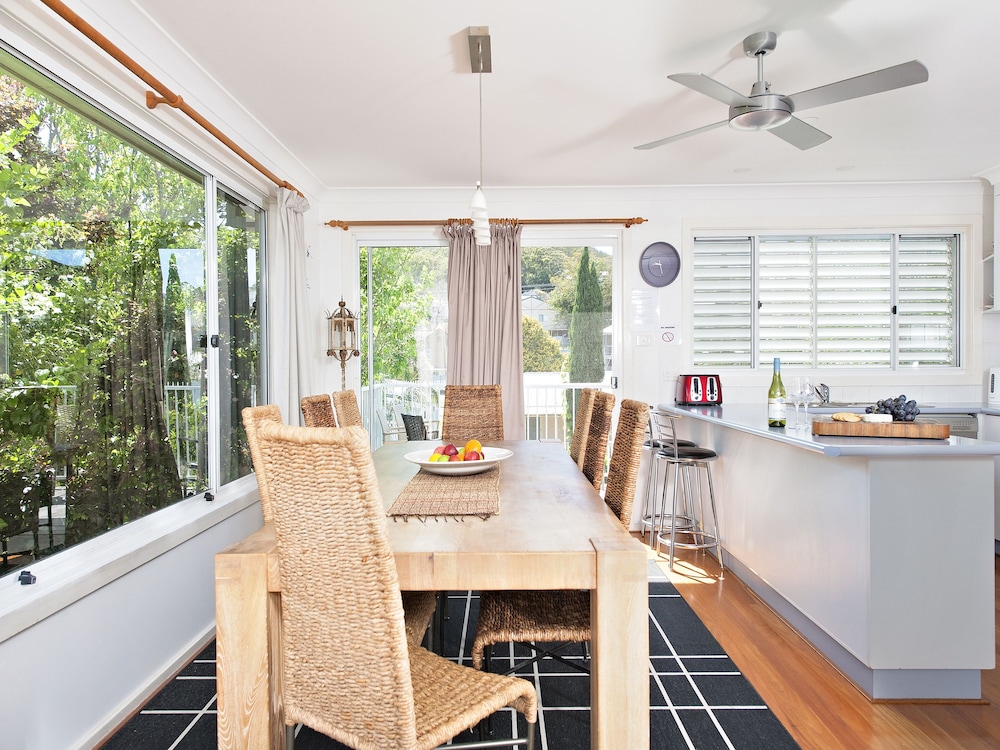 With a stay at this vacation home in Shoal Bay, you'll be near the beach, just a 5-minute walk from Tomaree National Park and a 3-minute drive from West Nelson Bay. This family-friendly vacation home is 1.9 mi (3.1 km) from d'Albora Marinas Nelson Bay and 2.5 mi (4 km) from Nelson Bay Golf Club. Make yourself comfortable in this air-conditioned vacation home, which features a private pool and a flat-screen TV. There's a private furnished balcony. A kitchen is outfitted with a refrigerator, a stovetop, and a microwave. Digital programming and an iPod docking station are provided for your entertainment, while complimentary wireless internet access keeps you connected. A private bathroom with a separate bathtub and shower features a deep soaking tub and a hair dryer. Distances are displayed to the nearest 0.1 mile and kilometer.
