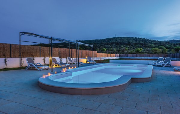 This luxurious holiday home with pool is located in Dubrava, near ibenik. Surrounded by nature and set on a large plot, this house is ideal for a carefree and relaxing holiday with family or friends. Two floors with internal staircase. There is also a barbecue on the terrace with the pool. You will certainly find entertainment in ibenik at various events and when you visit, for example, the Cathedral of St Jakov (UNESCO World Heritage Site) and the renovated fortress with spectacular views. The Solaris Beach Resort is about 4 kilometres away. Here you will find a fabulous range of sports and leisure activities as well as fantastic beaches on a large area. Day trips to the Krka and Kornati national parks are also recommended.
