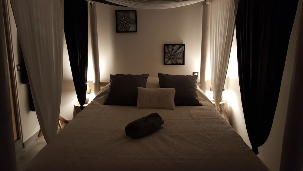Located in Six-Fours-les-Plages, Au Charme de Pépiole is in a rural location, within a 15-minute drive of Dolce Fregate Provence Golf Course and Port of Toulon. This guesthouse is 4.4 mi (7 km) from Charmettes Beach and 7.9 mi (12.7 km) from Toulon Beach. Treat yourself to a stay in one of the 2 individually decorated guestrooms, featuring private hot tubs and flat-screen televisions. Complimentary wireless internet access keeps you connected, while MP3 docking stations help you enjoy your music in the comfort of your room. Conveniences include refrigerators and coffee/tea makers, and housekeeping is provided daily. Distances are displayed to the nearest 0.1 mile and kilometer.