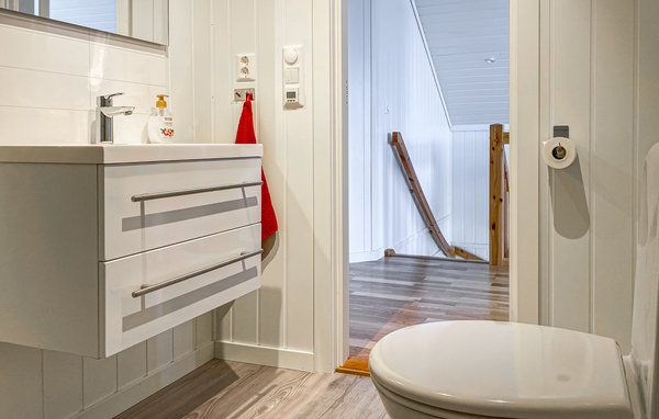 Situated on the shore of Jøsundet on the island, Jøa, this white vacation home invites you to spend beautiful vacation days with fishing trips, swimming fun and hiking. In the house, the cozy furniture in the older style creates an atmospheric atmosphere. Brew the coffee, take the rolls out of the oven and enjoy not having to rush to work. In the evening you can sit down on the cute red chairs and do the big puzzle. Meanwhile, the kids will surely eagerly tell you about the exciting animal tracks of the day.
