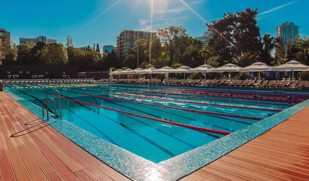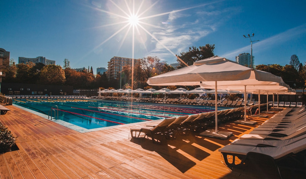 With a stay at Grand Hotel Zhemchuzhina, you'll be centrally located in Sochi, within a 10-minute walk of V.V. Barsova Dacha Museum and Sunny Beach. This beach hotel is 1.1 mi (1.7 km) from Sochi Arboretum and 1.8 mi (2.9 km) from Port of Sochi. Make yourself at home in one of the 887 guestrooms featuring refrigerators and flat-screen televisions. Rooms have private balconies. Complimentary wireless internet access keeps you connected, and cable programming is available for your entertainment. Bathrooms have complimentary toiletries and hair dryers. Distances are displayed to the nearest 0.1 mile and kilometer.