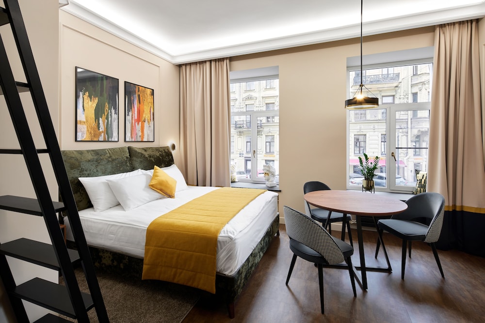 A stay at Kaleidoscope GOLD places you in the heart of St. Petersburg, steps from Admiralty Building and 3 minutes by foot from Alexander Garden. This hotel is 0.2 mi (0.3 km) from Nevsky Prospect and 0.2 mi (0.4 km) from Palace Square. Make yourself at home in one of the 30 air-conditioned rooms featuring flat-screen televisions. Complimentary wireless internet access is available to keep you connected. Private bathrooms with showers feature complimentary toiletries and hair dryers. Conveniences include safes and desks, and housekeeping is provided daily. Distances are displayed to the nearest 0.1 mile and kilometer.