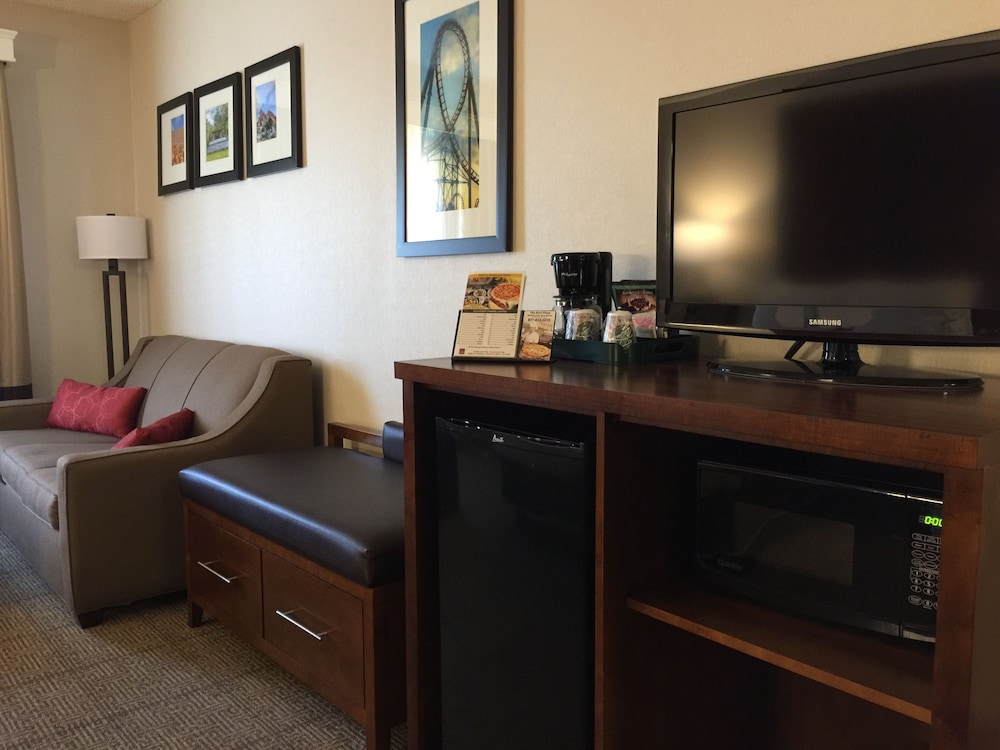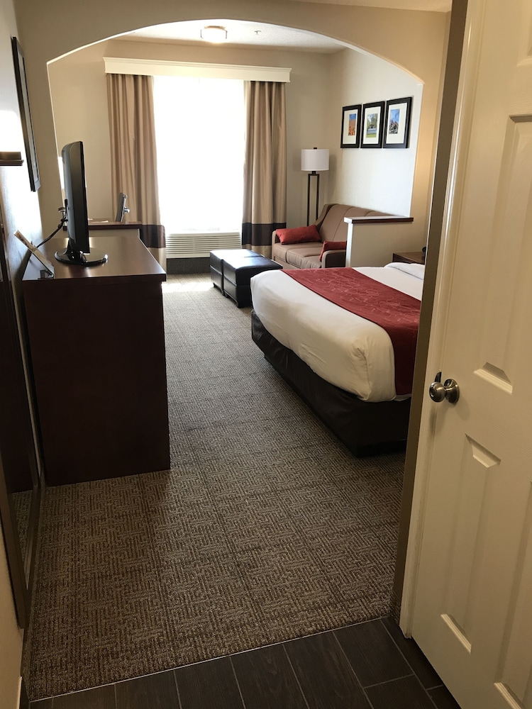 A stay at Comfort Suites Near Six Flags Magic Mountain places you in the heart of Stevenson Ranch, a 5-minute drive from Valencia Country Club and 5 minutes from The Ivy Day Spa. This hotel is 4.6 mi (7.5 km) from Six Flags Magic Mountain and 5.5 mi (8.9 km) from Six Flags Hurricane Harbor. Make yourself at home in one of the 100 air-conditioned rooms featuring refrigerators and microwaves. 43-inch LCD televisions with satellite programming provide entertainment, while complimentary wireless internet access keeps you connected. Private bathrooms with shower/tub combinations feature complimentary toiletries and hair dryers. Conveniences include desks and complimentary newspapers, as well as phones with free local calls. Distances are displayed to the nearest 0.1 mile and kilometer.