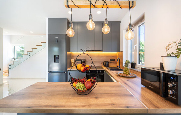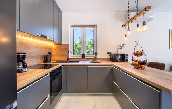 In this charming vacation home in Sukosan, you will experience an unforgettable vacation full of comfort and relaxation. The modern interior design, characterized by stylish furniture and bright rooms, creates a pleasant atmosphere. The particularly well-equipped kitchen and the cozy living room invite you to enjoy convivial evenings.