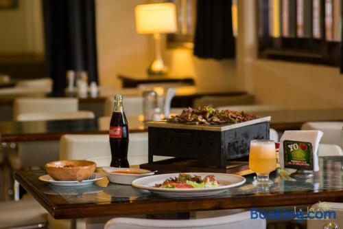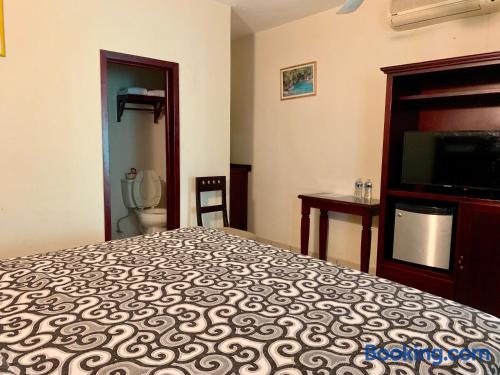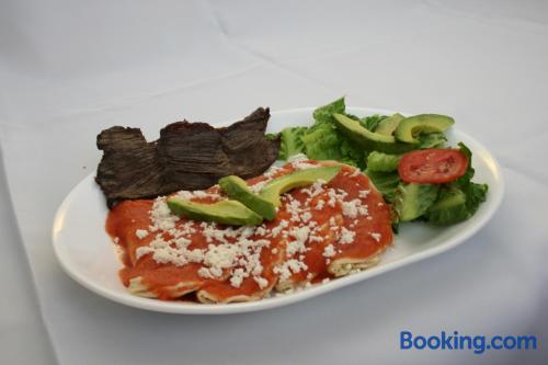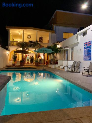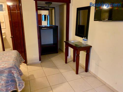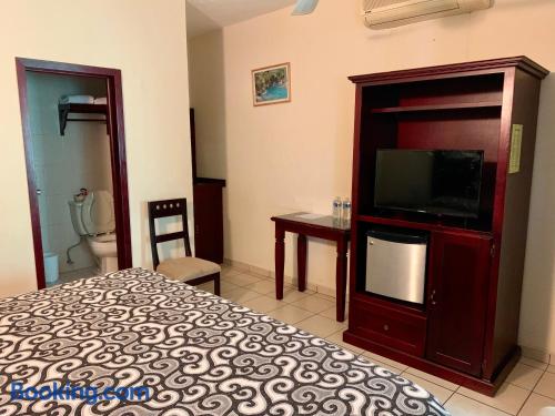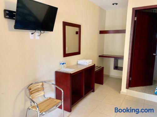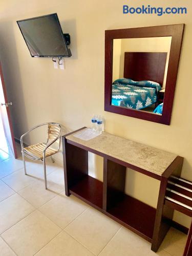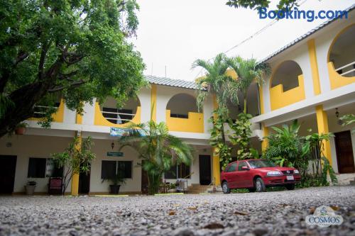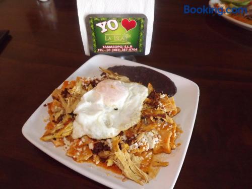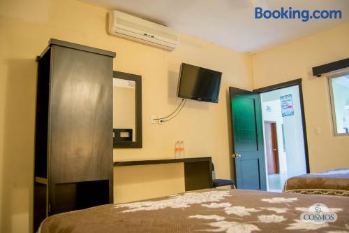 Just a 5-minute drive from the Tamasopo Waterfalls, Hotel Cosmos offers a small outdoor pool, a games room and gift shop. Each functional, air-conditioned room includes cable TV and a private bathroom. Hotel Cosmos’s restaurant serves Mexican and international dishes, including fresh seafood, salads and steaks. Several bars and restaurants can also be found in the surrounding streets. The hotel is located in the small town of Tamasopo, around 124 mi from San Luis Potosí. The surrounding area is famous for its natural beauty, lush vegetation and waterfalls.