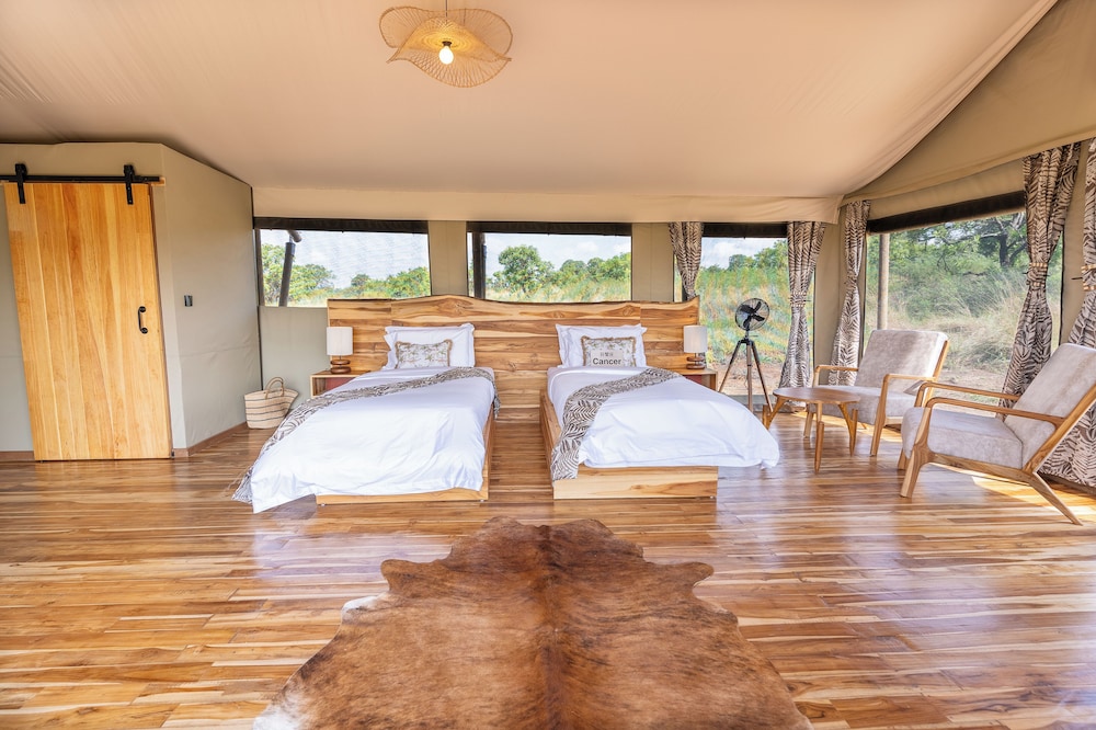 With a stay at Malaika Mara River Luxury Camp in Serengeti, you'll be 24.6 mi (39.6 km) from Mara River and 26.3 mi (42.3 km) from Serengeti National Park. This lodge is 4.3 mi (6.9 km) from Ikorongo Game Reserve and 12.2 mi (19.7 km) from Northern Serengeti. Make yourself at home in one of the 6 guestrooms. Rooms have private balconies. Bathrooms feature separate bathtubs and showers with rainfall showerheads and complimentary toiletries. Conveniences include safes and complimentary bottled water, and housekeeping is provided daily. Distances are displayed to the nearest 0.1 mile and kilometer.
