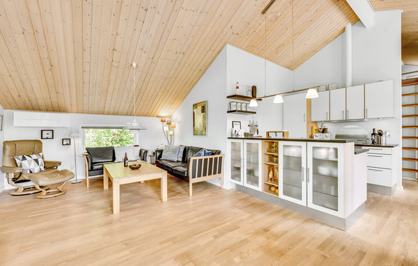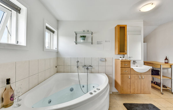 Experience a relaxing holiday in the inviting house, which welcomes its guests close to the fjord with bright rooms, to which distinctive wooden ceilings lend a cosy charm. Enjoy a beautiful view of the outdoors as soon as you wake up. After a walk on the beach, relax in the sauna and whirlpool and gather the whole family for a cosy evening with a good film in the seating area by the quietly crackling wood-burning stove.