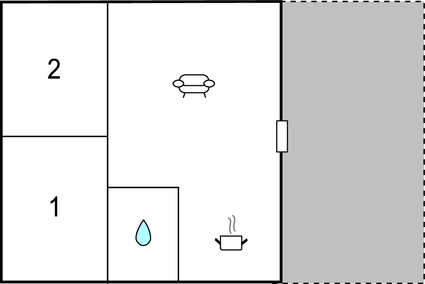 The holiday home has an open-plan kitchen/living room, 2 bedrooms, 1 bathroom with shower and a mezzanine floor. You can spend the balmy summer evenings on your own terrace.