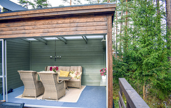 Step outside, where the terrace invites you to relax. After a sauna session, enjoy the beautiful view of the forest from the glazed balcony and prepare delicious meals in the outdoor kitchen.