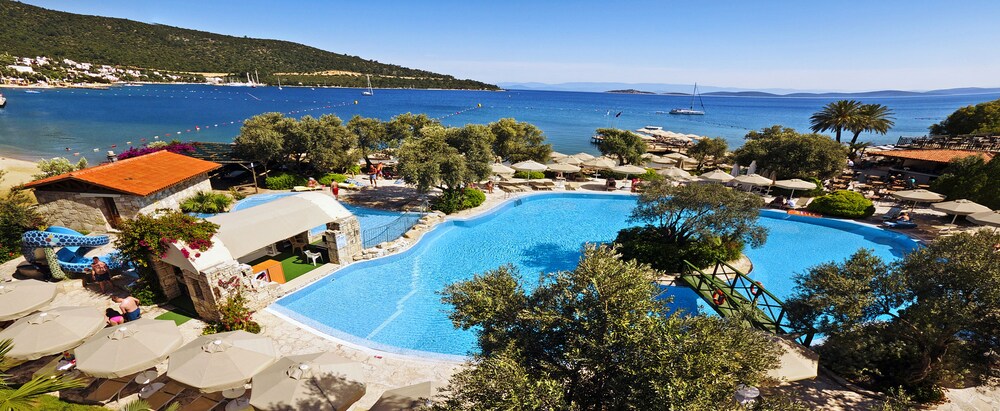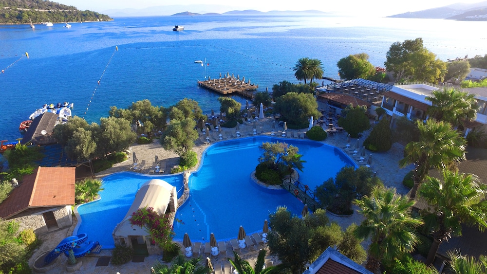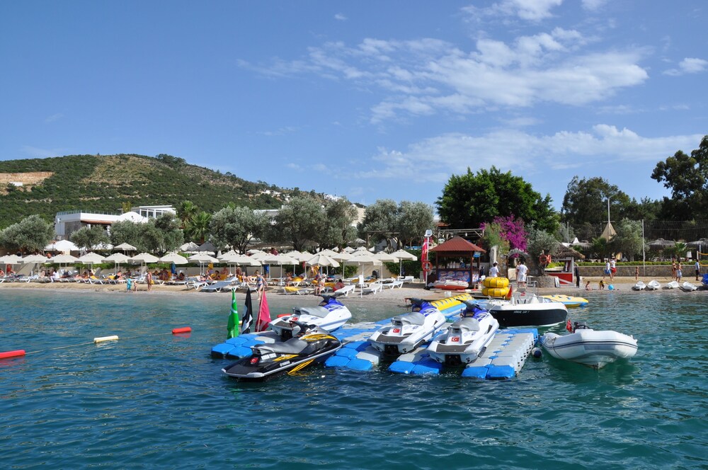 With a stay at Izer Hotel Beach Club - All Inclusive in Bodrum, you'll be within a 15-minute drive of Bodrum Beach and Bodrum Castle. This 4-star property is 4.8 mi (7.7 km) from Bodrum Marina and 7.8 mi (12.5 km) from Bitez Beach. Make yourself at home in one of the 191 guestrooms featuring minibars and LCD televisions. Rooms have private balconies. Complimentary wireless Internet access keeps you connected, and satellite programming is available for your entertainment. Private bathrooms with showers feature complimentary toiletries and hair dryers. Distances are displayed to the nearest 0.1 mile and kilometer.