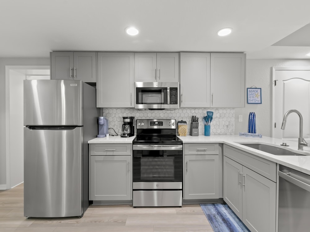 Located in Treasure Island (Sunshine Beach), this condo is steps from St. Petersburg - Clearwater Beaches and a 2-minute drive from John's Pass Village & Boardwalk. This beach condo is 9.5 mi (15.3 km) from Tampa Bay and 10.1 mi (16.2 km) from Vinoy Park. Make yourself comfortable in this individually decorated condo, featuring a kitchen with a refrigerator and an oven. There's a private balcony. Complimentary wireless internet access is available to keep you connected. Conveniences include a microwave and a coffee/tea maker. Distances are displayed to the nearest 0.1 mile and kilometer.