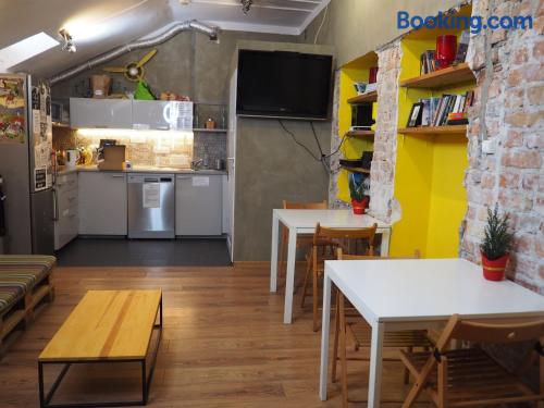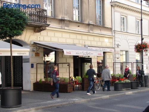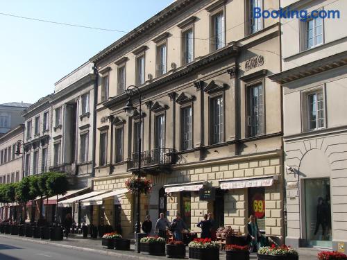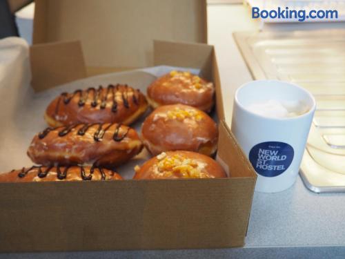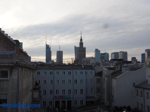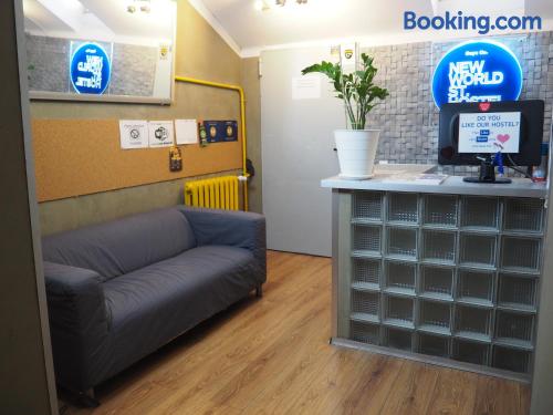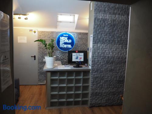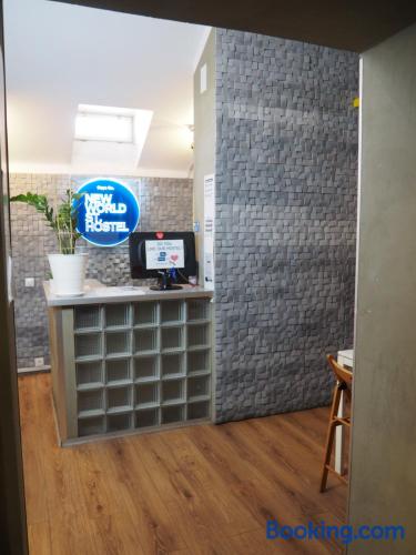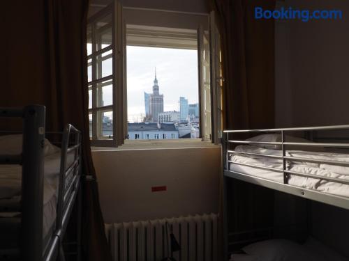 New World St. Hostel is located on the main shopping street in Warsaw, Nowy Świat. It offers colorful rooms with shared facilities. WiFi is free on site. Some rooms at the New World St. Hostel come with satellite TV. Most offer views of central Warsaw. Access to ironing facilities, maps, a washing machine and hairdryers is included in the price. The hostel is located just 15 minutes’ walk from the Old Town. The Warsaw Central Station is 2953 feet away. The property is surrounded by many cafés and restaurants of the Nowy Świat Street. Guests of the New World St. Hostel have access to a common room, featuring a kitchenette and a plasma TV with satellite channels.