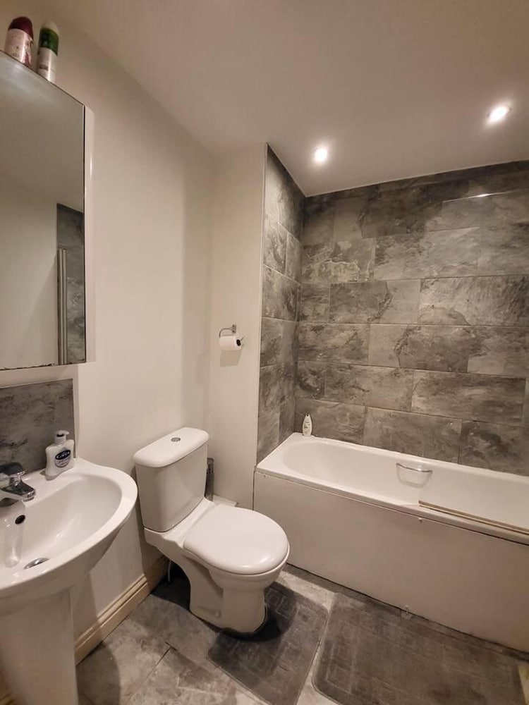 With a stay at this residence in Grays, you'll be within a 5-minute drive of Lakeside Shopping Centre and Thames River. This residence is 14.8 mi (23.9 km) from ExCeL Exhibition Centre and 7.4 mi (11.8 km) from Bluewater Shopping Centre. There's a private balcony. A kitchen is outfitted with a refrigerator, an oven, and a stovetop. Complimentary wireless internet access is available to keep you connected. A private bathroom with a separate bathtub and shower features a deep soaking tub. Conveniences include a microwave and an electric kettle. Distances are displayed to the nearest 0.1 mile and kilometer.