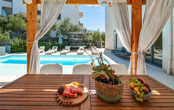 Just a few minutes' walk from the pebble beach, the luxurious Villa Val is located in the tourist settlement of Diklo. On the harmoniously designed ground floor, you will find a fully equipped kitchen with direct access to the terrace with adjoining heated pool, a stylish living and dining room and a cosy bedroom. Further bedrooms and a games room with a pool table are located on the upper floor, allowing you to choose between relaxation and entertainment.